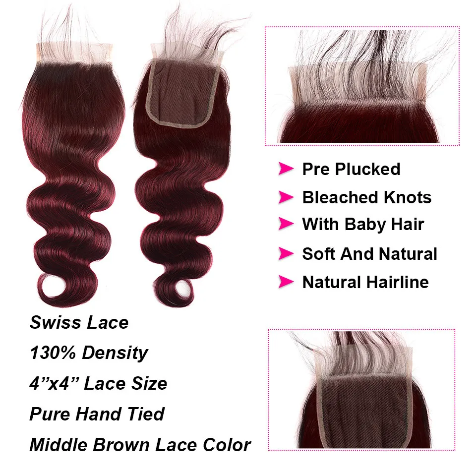 Wiggins 99j бордовые пряди с закрытием бразильские объемные волны 12 14 16 18 20 22 24 дюйма 3 пряди с закрытием Remy человеческие волосы