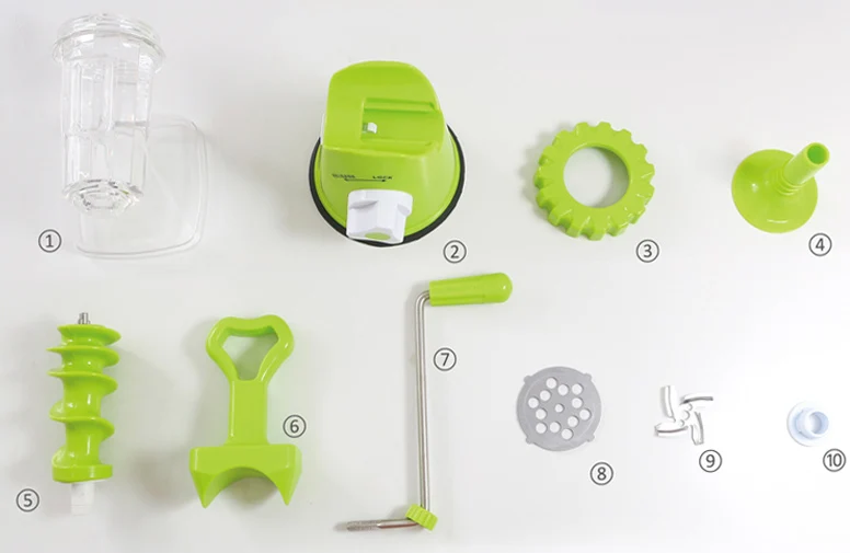 -Изготовлен из АБС-пластика, поликарбоната и нержавеющей стали, прочный и долговечныйПосылка в комплект входит:1 х мясорубка