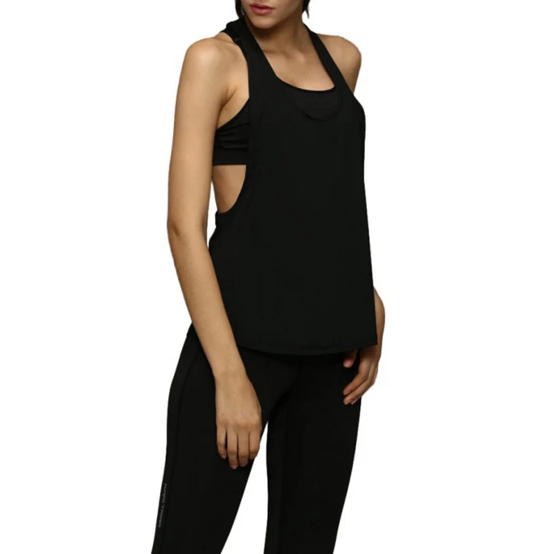 Летняя Сексуальная Женская майка, быстросохнущая рубашка для йоги, свободная Спортивная безрукавная майка сорочка для занятий бегом