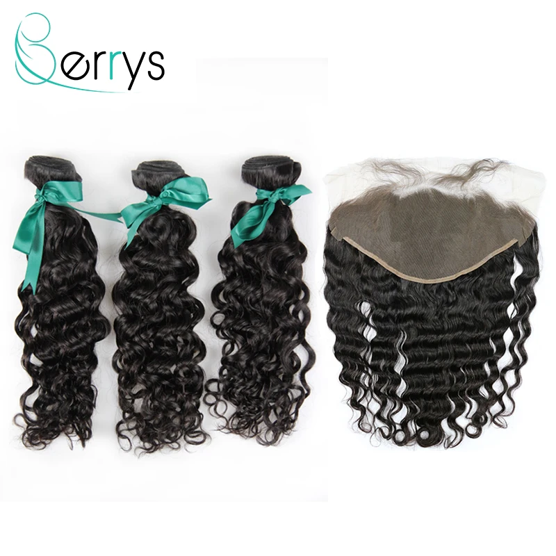 Berryshair, перуанские волнистые волосы, 3 шт., человеческие волосы, пучки с 13x 4/13x 6, кружевные фронтальные, бесплатная часть, наращивание, бесплатная доставка