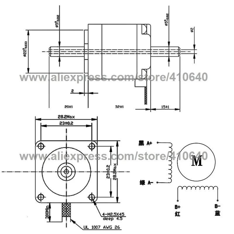 Механический Размер шагового двигателя NEMA11 11HY3401-HLS: