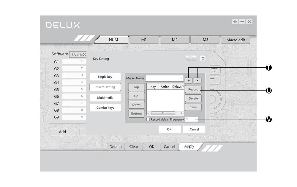 3. Настраиваемые клавиши: G1-G9, Delete, S, /, Z, X, C, V, нажмите на эти кнопки, появится окно настройки.