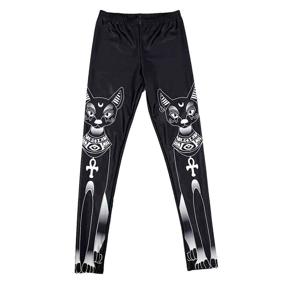 Женские египетские печать Кот хиппи готические обтягивающие повседневные брюки колготки леггинсы