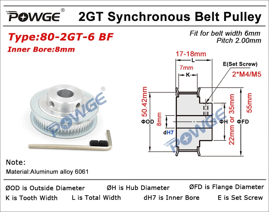 Ремень синхронного шкива POWGE GT2/2GT 16T/20T/30T/40T/60T/80T/85T (16T:60T 20T:60T 30T:60T 40T:60T) (16T:80T 20T:80T 30T:80T 40T:80T) (16T:85T 20T:85T 30T:85T 40T:85T) Комплект ремня зубчатого ремня с коэффициентом снижения скорости 200/280 мм для ЧПУ