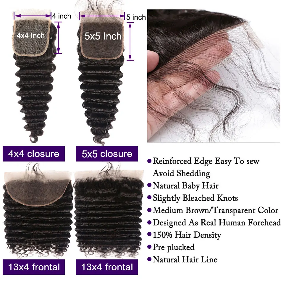 Цвет волос: натуральный черный. Текстура волос: свободная глубокая волна Длина волос: 8-30 дюймов в наличии Плотность волос: 150% 180% плотность в наличии Размер шапки: средний размер, можно регулировать Материал волос: 100% Человеческие волосы Remy Доставка из: Китай (материк)