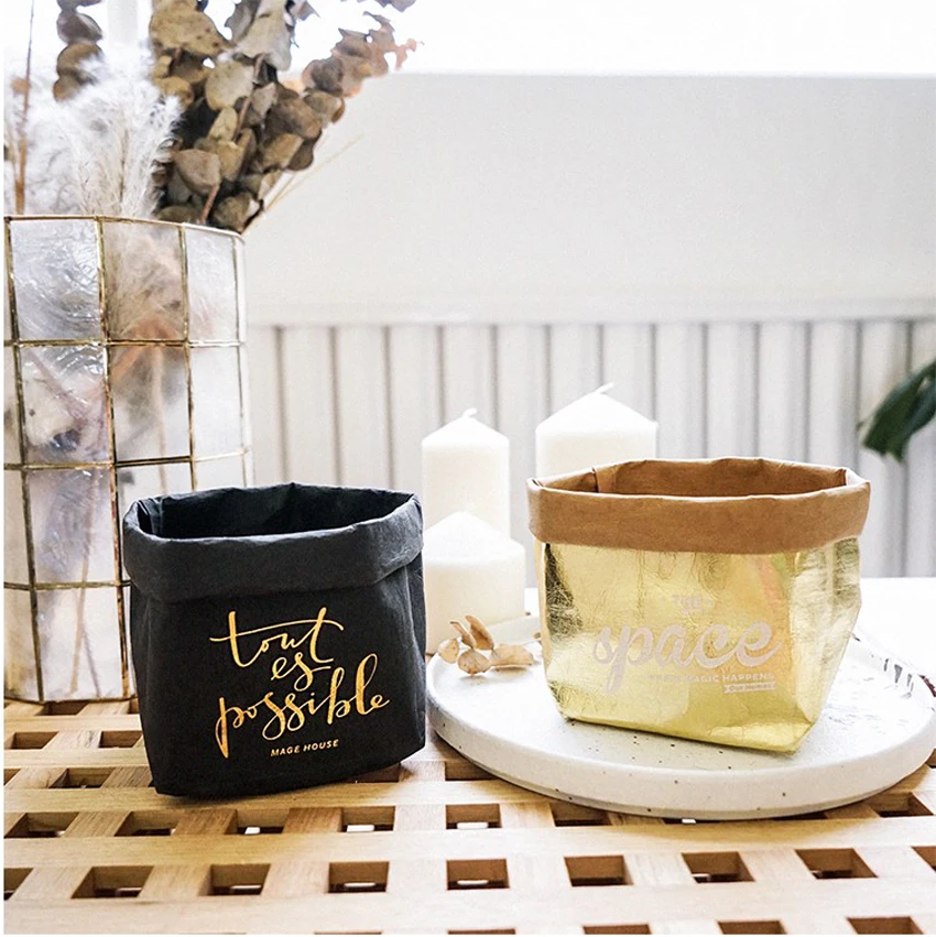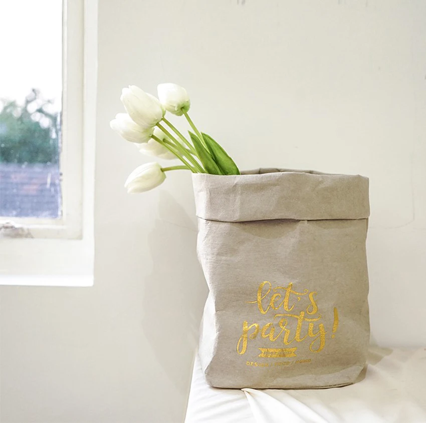Моющиеся Сумка для хранения из крафт-бумаги небьющиеся растения в скандинавском стиле, бумага для выращивания Sundries еда, водонепроницаемые мешки для хранения, органайзер для дома