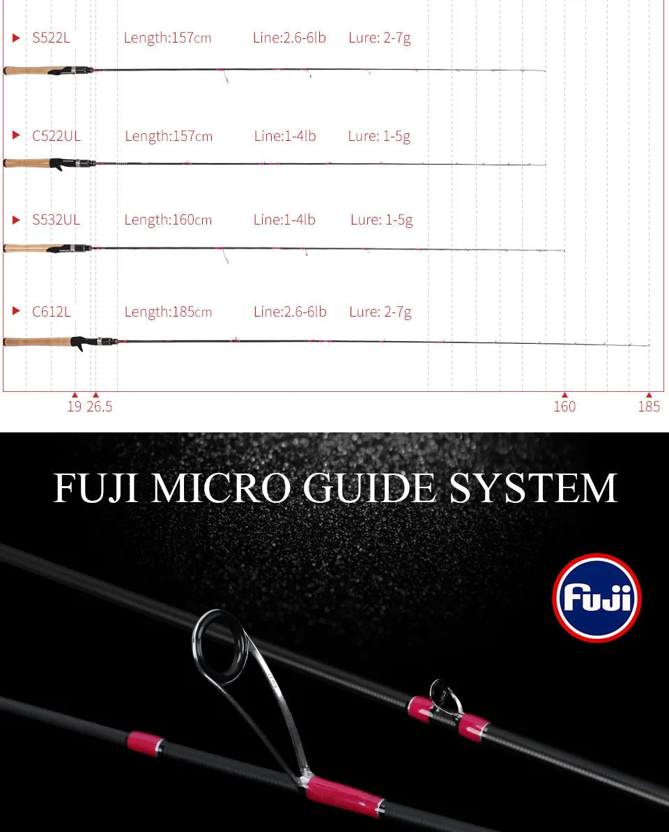 Lure Weigh: S3112UL 1-5g,S522L 2-7g, C522UL 1-5g, S532UL 1-5g,C612L 2-7g