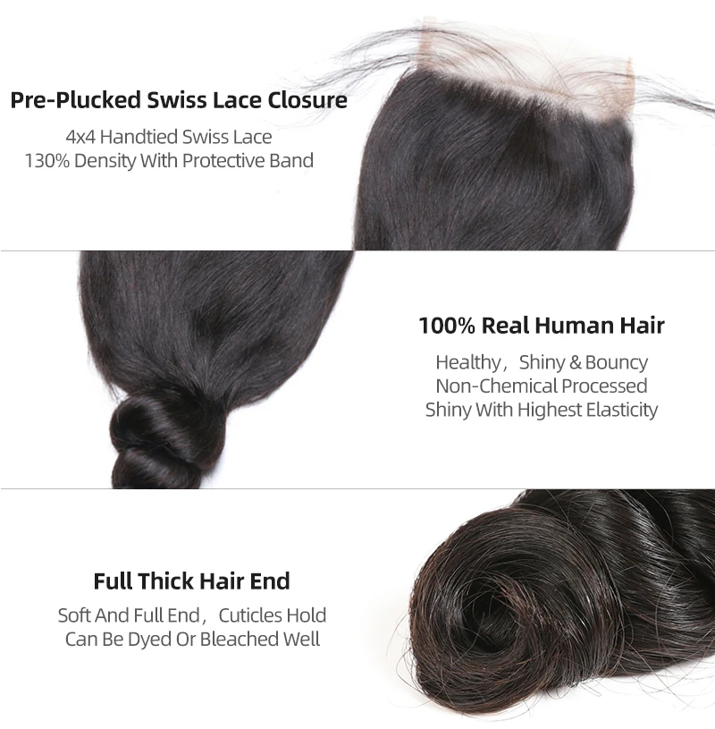 Наименование товара: Бразильские свободные волнистые пряди человеческих волос с закрытием Бренд: Ali Queen Hair Products Co., Ltd Цвет волос: натуральный черный цвет, может быть окрашен и отбелен. Текстура застежки: швейцарское кружево со свободной частью Размер застежки: 4x4 с плотностью 130% Длина волос: 10 "~ 26" Материал волос: 100% человеческие волосы высокого качества Время доставки: около 2-5 дней по DHL/FEDEX Характеристика: здоровая, полная и упругая текстура
