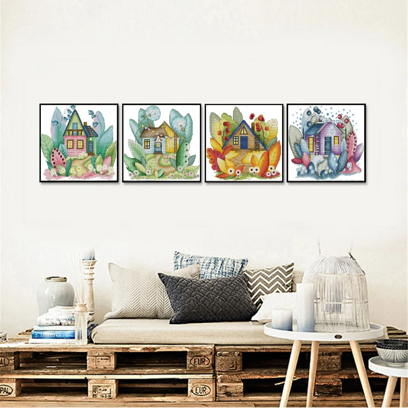 Joy Sunday Magic cabin Combination Chart Cross Stitch Fabric Aida Canvas Embroidery DMC Kit Counted Cross Stitched Needlework