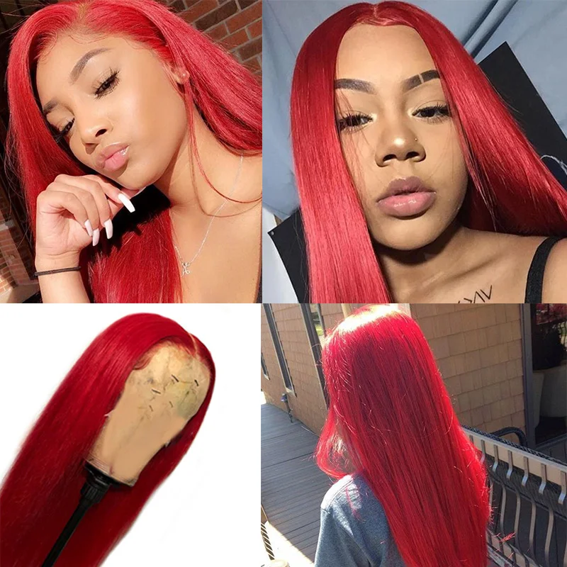 Парики из натуральных волос на фронте 180 густоты, длинные прямые волосы, парики на фронте шнурка, красные перуанские волосы Remy, парики на шнурках для женщин