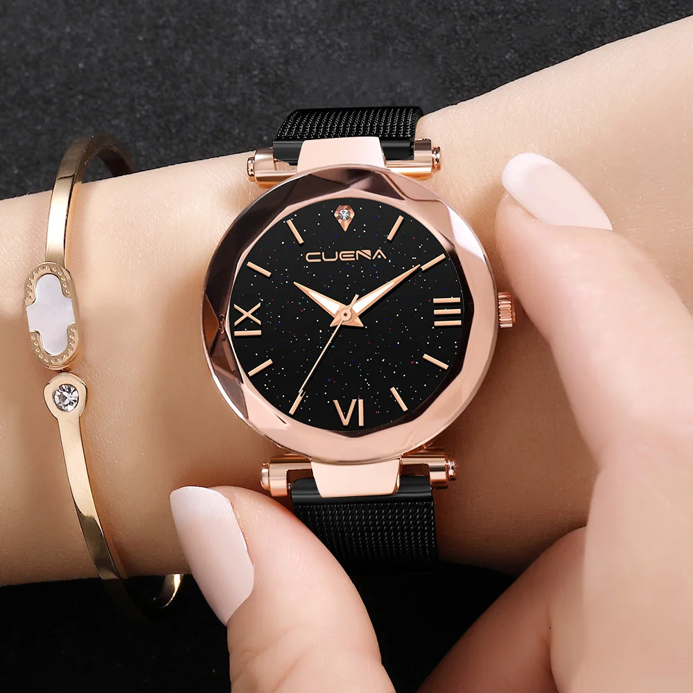 CUENA женские часы из нержавеющей стали, кварцевые наручные часы для отдыха