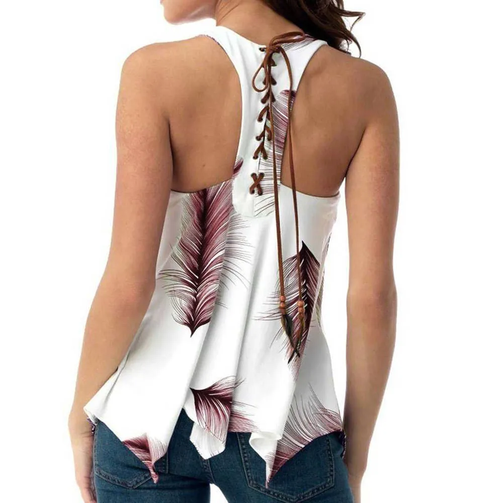 Женские пляжные топы без рукавов с принтом больших размеров, безрукавная блузка с асимметричным подолом, пуловеры Топы Рубашки