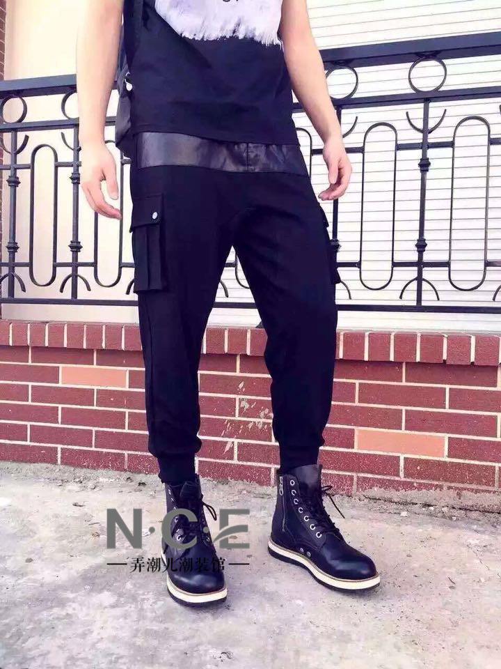 Новинка 2019 Мужская одежда стиль для волос модель строчки кожаные брюки в