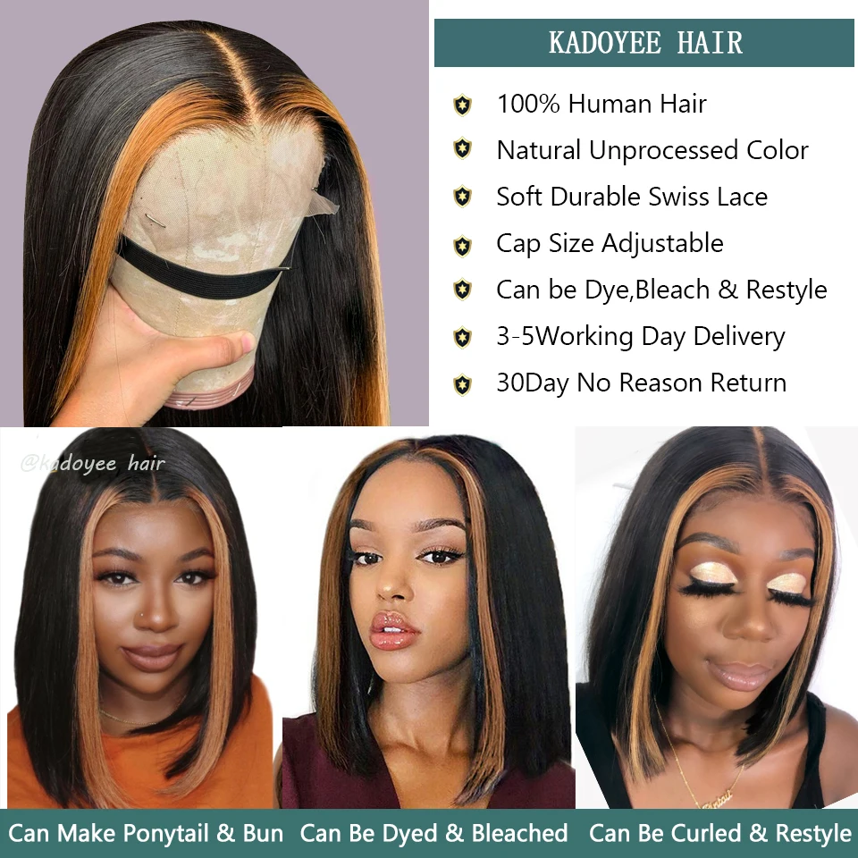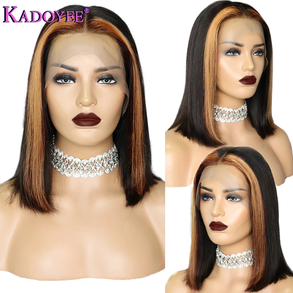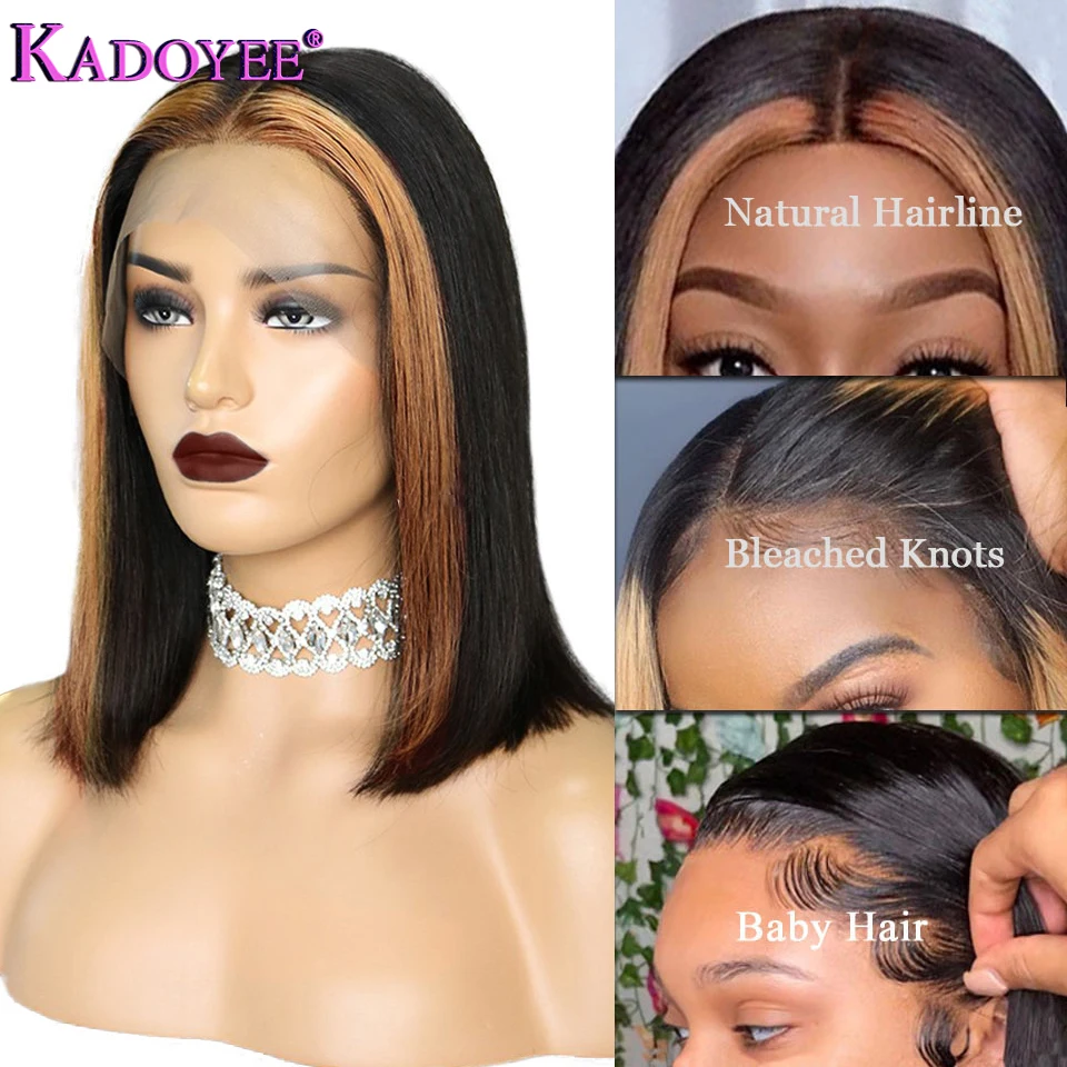 Выделите прямой парик БобаЦвет ОмбреПарики из человеческих волосБразильскийПредварительно выщипывает волосы ребенкаКружевные фронтальные парики