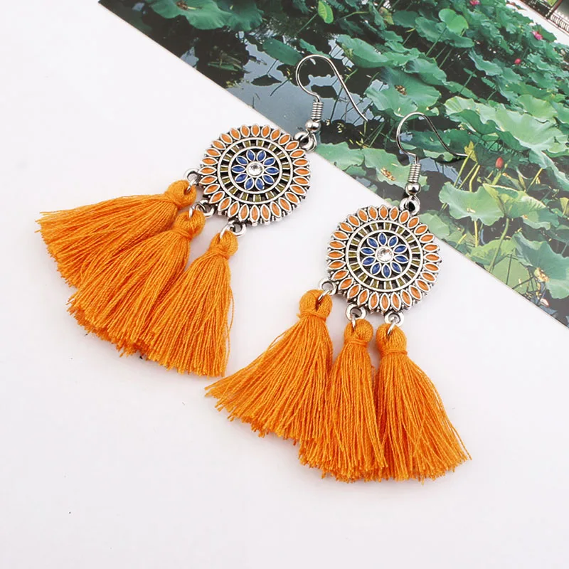 Богемные этнические длинные висячие серьги с кисточками для женщин многоцветные серьги с бахромой и эмалью Эффектные серьги в стиле бохо ювелирные изделия