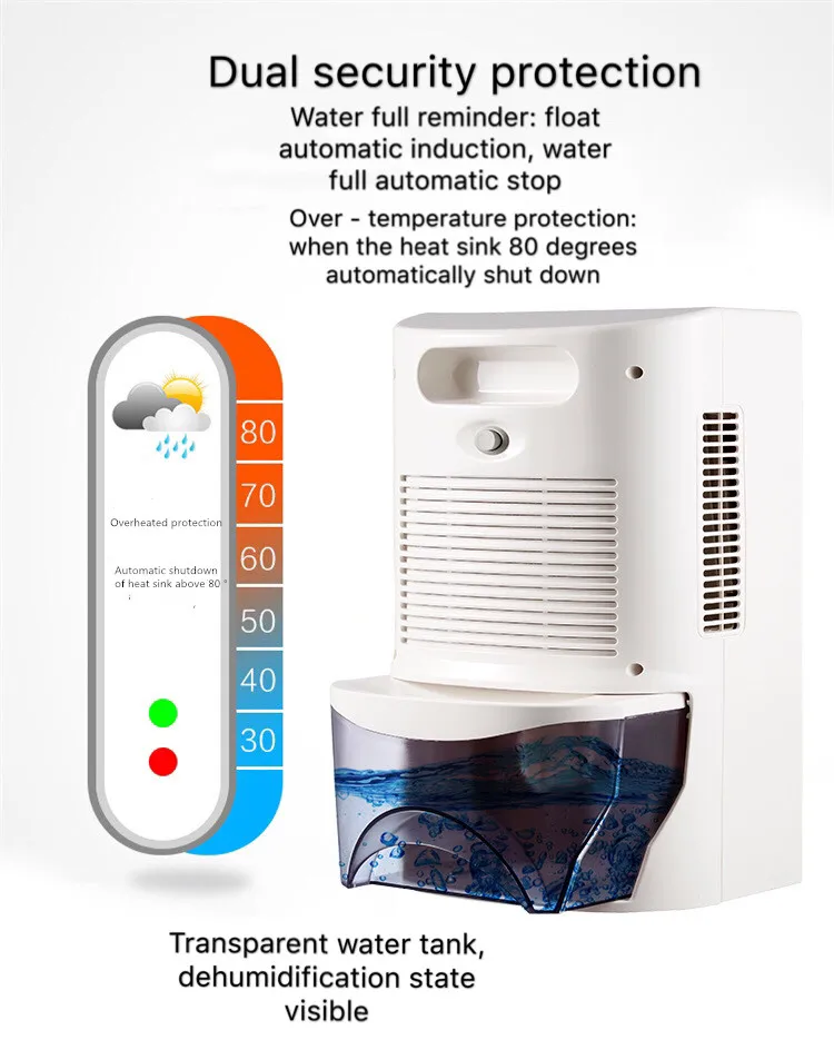 Название: домашний Интеллектуальный осушитель Модель: MD898 Вход: 100-240 В AC Выход: DC13V,4.6A Мощность: около 50 Вт (это займет всего 0,8 кВт непрерывно работать в течение целого дня.) Рабочая среда: 13 ° C ~ 40 ° C, > 40% RH Размер: 245 мм * 360 мм * 185 мм осушение: 750 мл ± 10%/день (30 C,80% RH) ёмкость: 2000 мл Шум по уровню поверхности:<36dB Вес: 2,2 кг