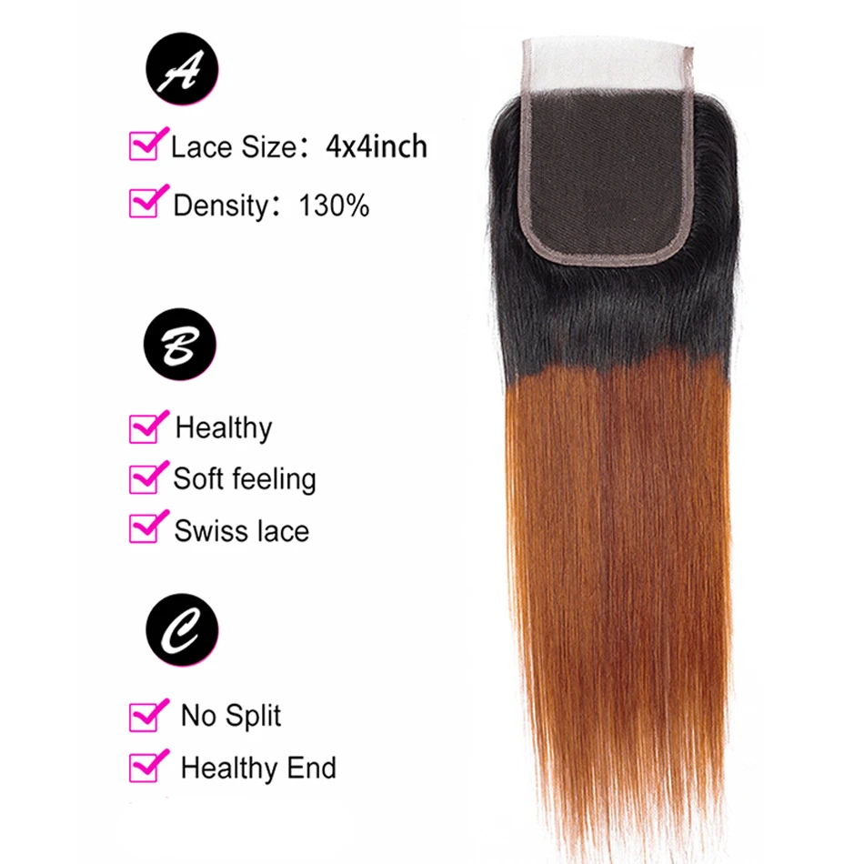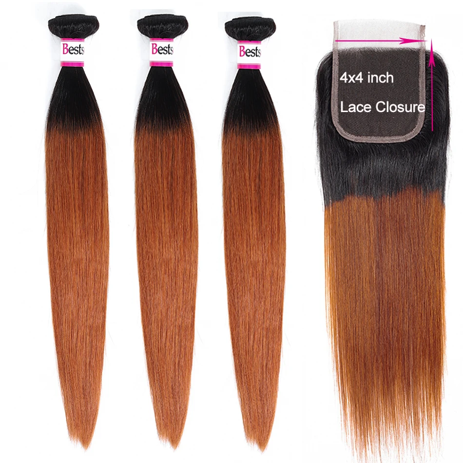 Bestsojoy Ombre Brazilian Straight Hair 3 Bundles With Closure T1B/30 Human Hair Bundles With 4*4 Lace Closure