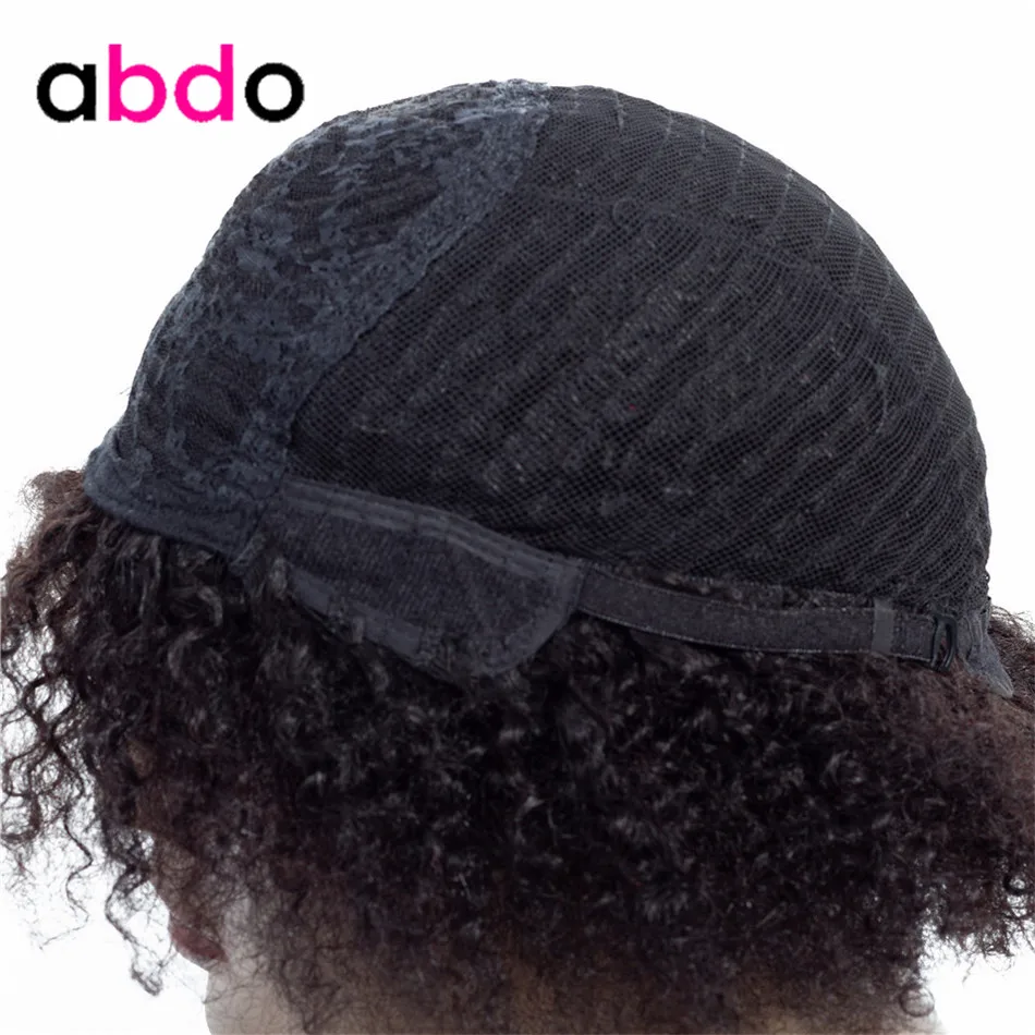 Abdo Human Hair Wigs Short Kinky Curly Wig For Black Women Machine Made Brazilian Bob Wig Non-Remy Hair AverageSize