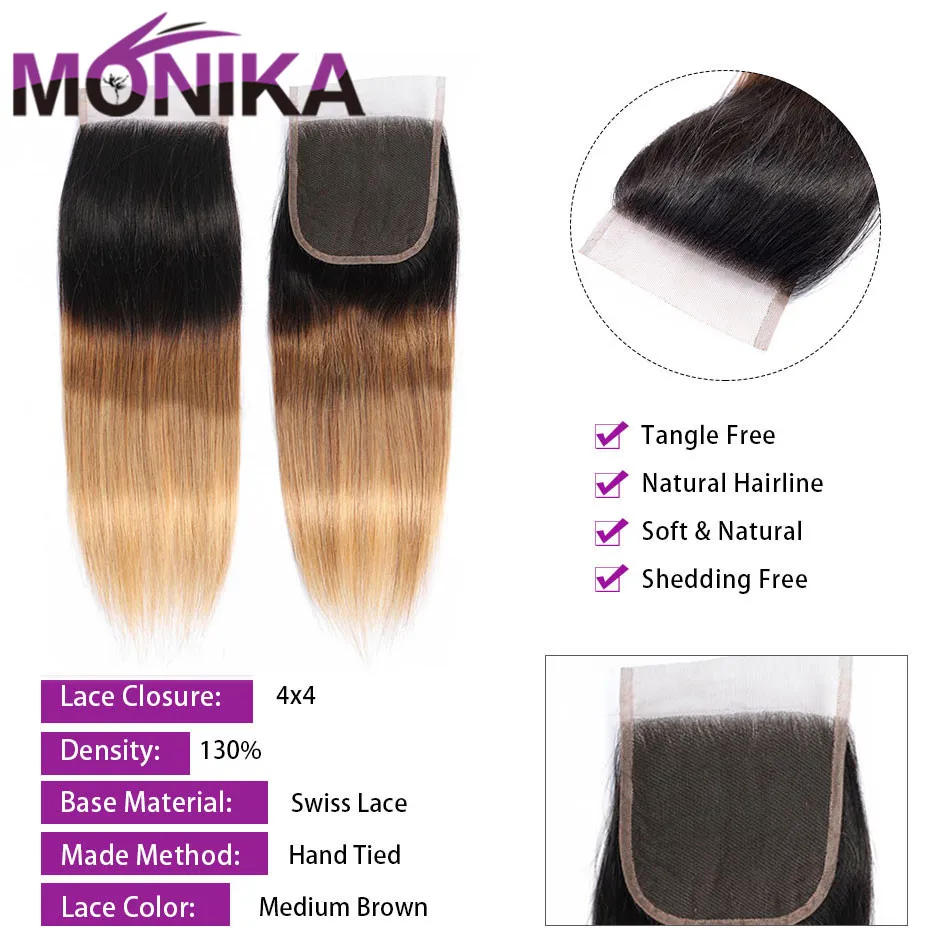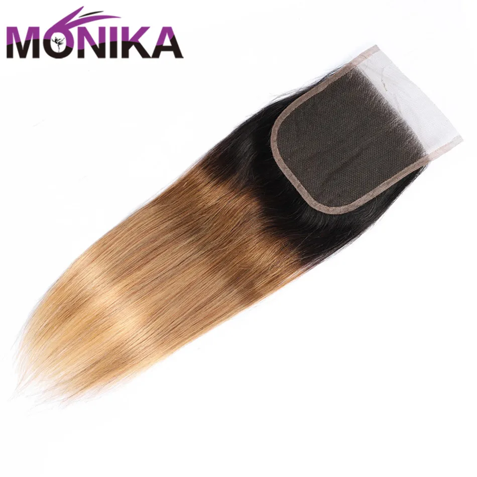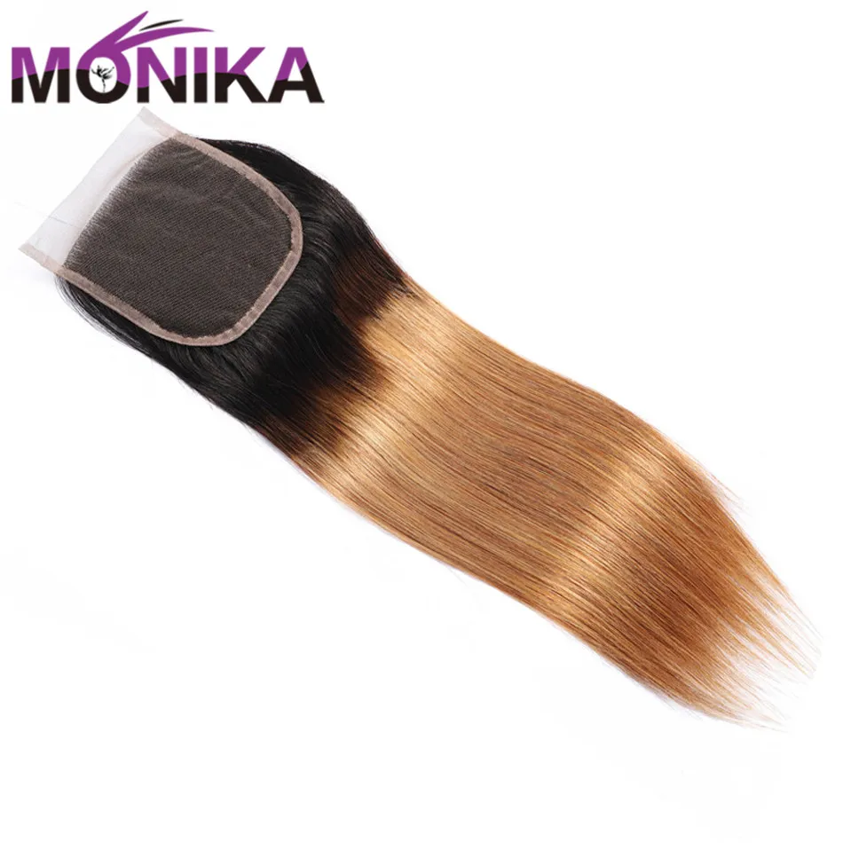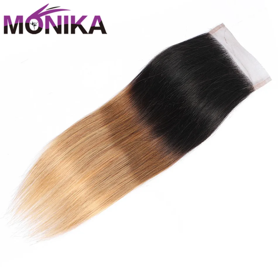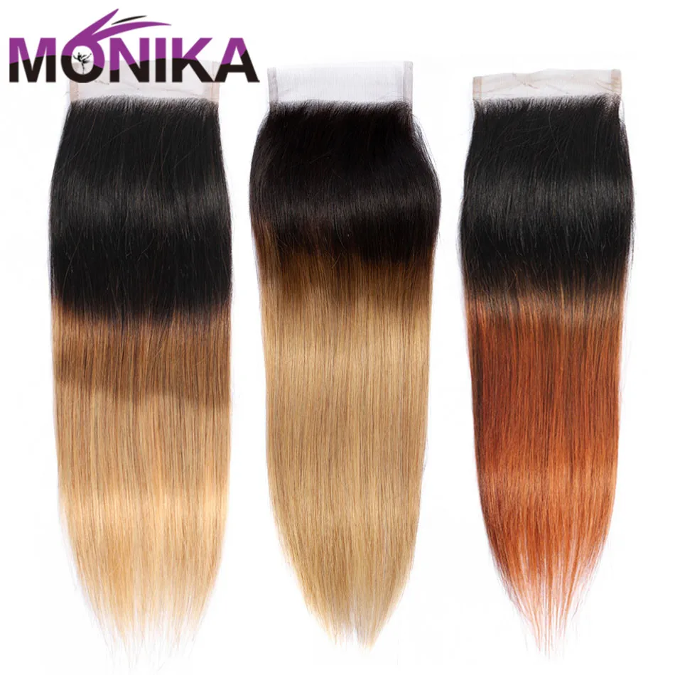 Monika волос Закрытие Омбре цветной T1B #4 #27 #30 Кружева Закрытие 4X4 бразильские прямые волосы Закрытие человеческих волос не Реми закрытие