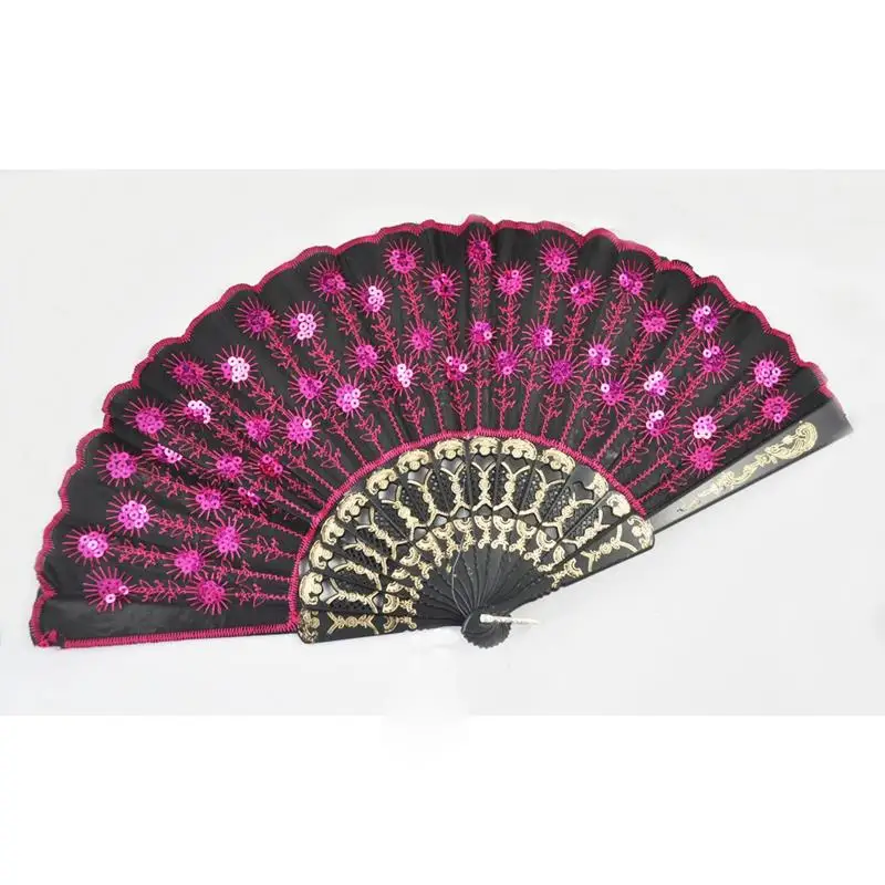 * SODIAL (R) Павлин узор блесток тканевый Ручной Веер декоративный ярко-розовый цвет