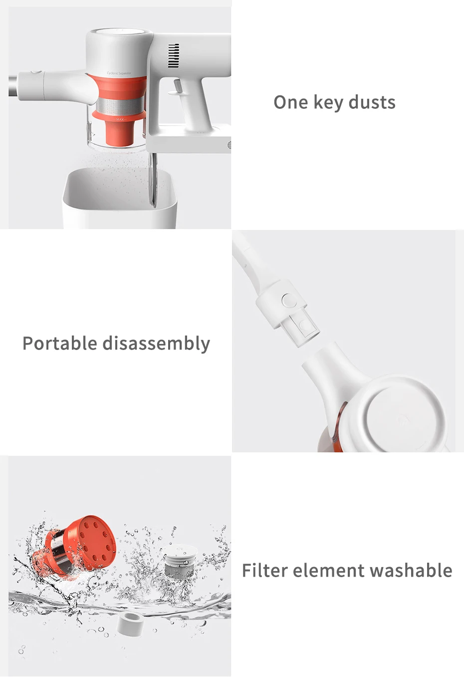 Пяти этапах HEPA фильтрации пяти этапах HEPA фильтрации задерживает пыль, как малых по мере того как 0,3 микрона и 99.97% аллергенов. Всасывание их в мусорное ведро, не входя в двигатель пылесоса, также может избежать вторичного загрязнения во время следующего usr.