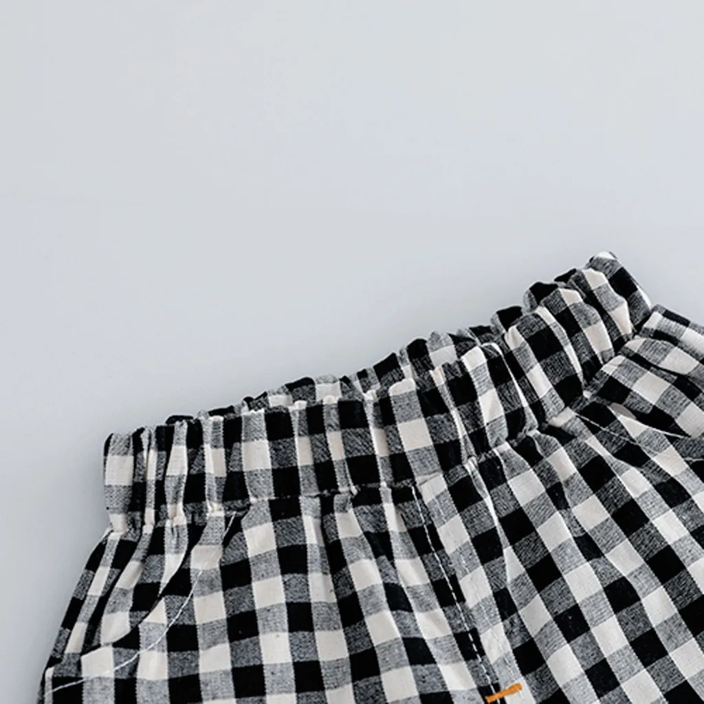 Хлопковый летний костюм для мальчиков, комплект повседневной одежды для малышей, для маленьких мальчиков, с жилетом с ананасами, в клетку, #06