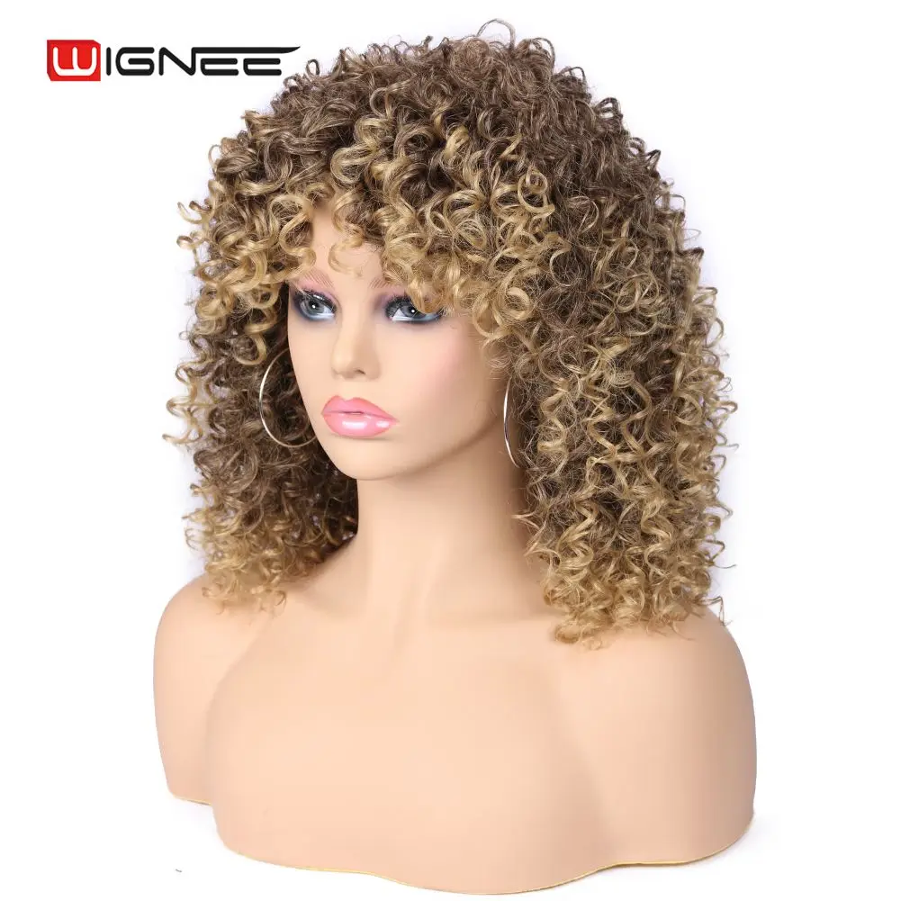 Wignee кудрявый парик с челкой, высокая плотность, смешанный коричневый, светлый, без шнурка, синтетические парики для женщин, афро-американский