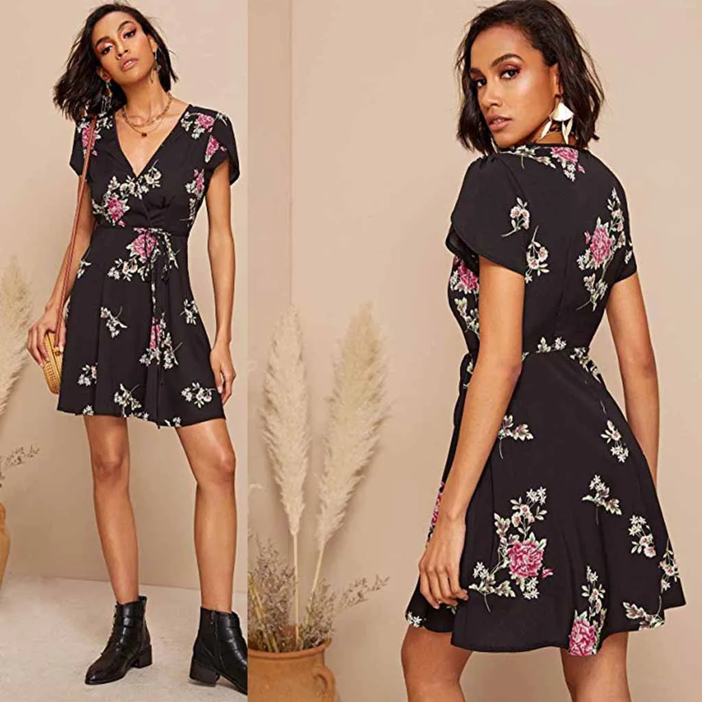 Женское винтажное платье-миди с коротким рукавом открытой спиной - купить по