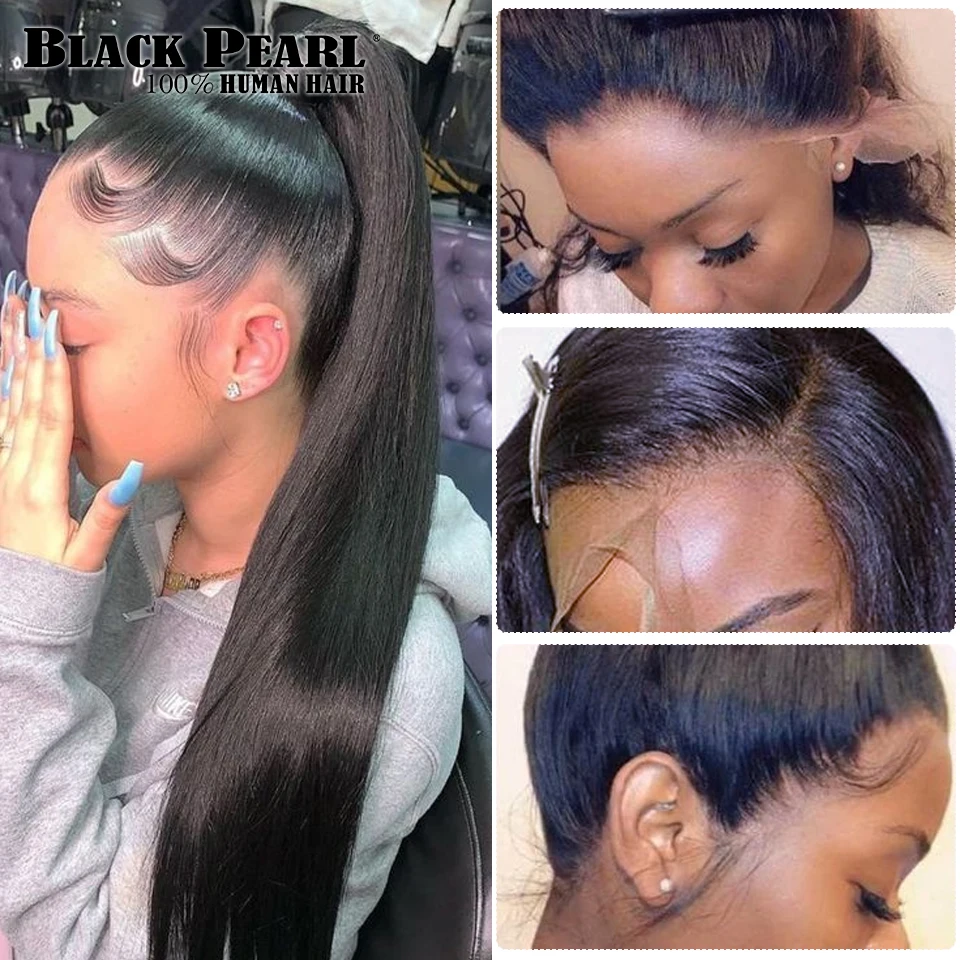 Bone прямые человеческие волосы парики 360 фронтальные парики шнурка предварительно выщипанные бразильские человеческие волосы прямые парики фронта шнурка для женщин