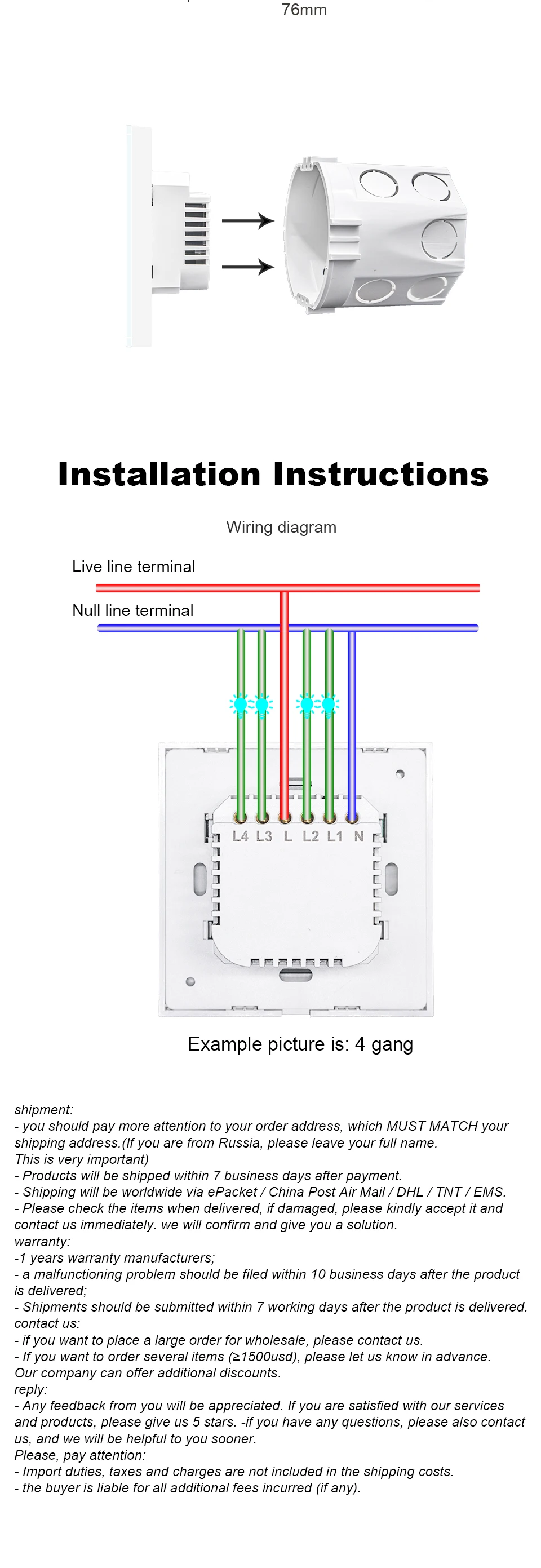 Norklmes сенсорный ЕС Великобритания Wifi настенный сенсорный выключатель 1 2 3 4 банды 1 2 способ беспроводной пульт дистанционного управления ламповое реле приложение Управление работает с Alexa Google Home Примечание: коммутатор должен быть подключен через Lin (Live input) и Nin (нейтральный вход). В то время как выход в реальном времени. Умный настенный выключатель Norklmes с сенсорным управлением, 1, 2, 3, 4 банды, роскошный настенный выключатель со стеклянной панелью. Беспроводной настенный выключатель можно добавить в приложение iOS/Android smart life и tuya через WiFi, Возможность удаленного включения/выключения подключенного светодиодный устройства и освещения из любого места в любое время. С помощью этого сенсорного переключателя света пользователи могут проверить статус освещения в реальном времени на своих смартфонах. Дистанционный настенный выключатель светодиодный Подсветка позволяет легко найти и включить свет в ночное время. В настенный Wi-Fi адаптер может быть использовано для управления освещением или бытовой техники. Обновите свой дом с этой современной модной альтернативой традиционным переключателям света. Сенсорный переключатель включения/выключения Дистанционное включение/выключение-включение/выключение света из любого места Поддержка приложения-бесплатное iOS и Android мобильное приложение smart life и tuya smart Синхронизация состояния-Статус устройства в режиме реального времени, предоставленный в приложении Настройка времени/таймеры обратного отсчета для включения/выключения в указанное время Поделитесь контролем-Управляйте своим умным домом вместе с семьей Сцена-включение/выключение соединения устройств с одним нажатием Голосовое управление-отлично работает с Amazon Alexa, Google Home Пульт дистанционного управления Вкл/Выкл Одиночный/повторный/Обратный отсчет времени Разделите контроль Группа/сцены управления Работает с Amazon Alexa Работает с Google Home Работает с IFTTT
