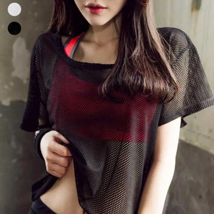 Тип одежды: весенне-летняя женская футболка с коротким рукавом из сетчатого материала для йоги, быстросохнущие спортивные топы для бега