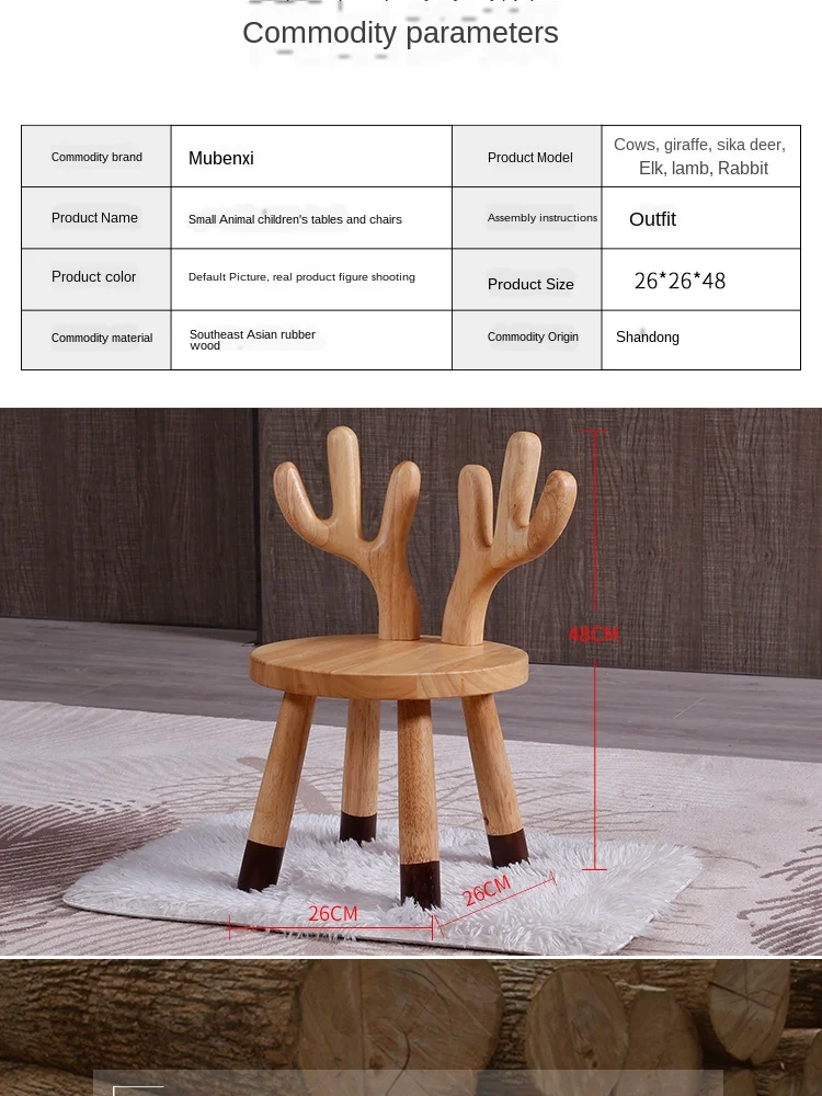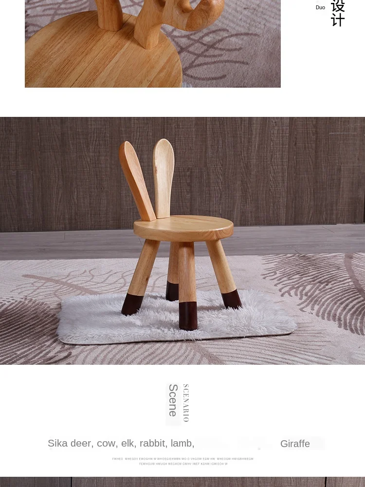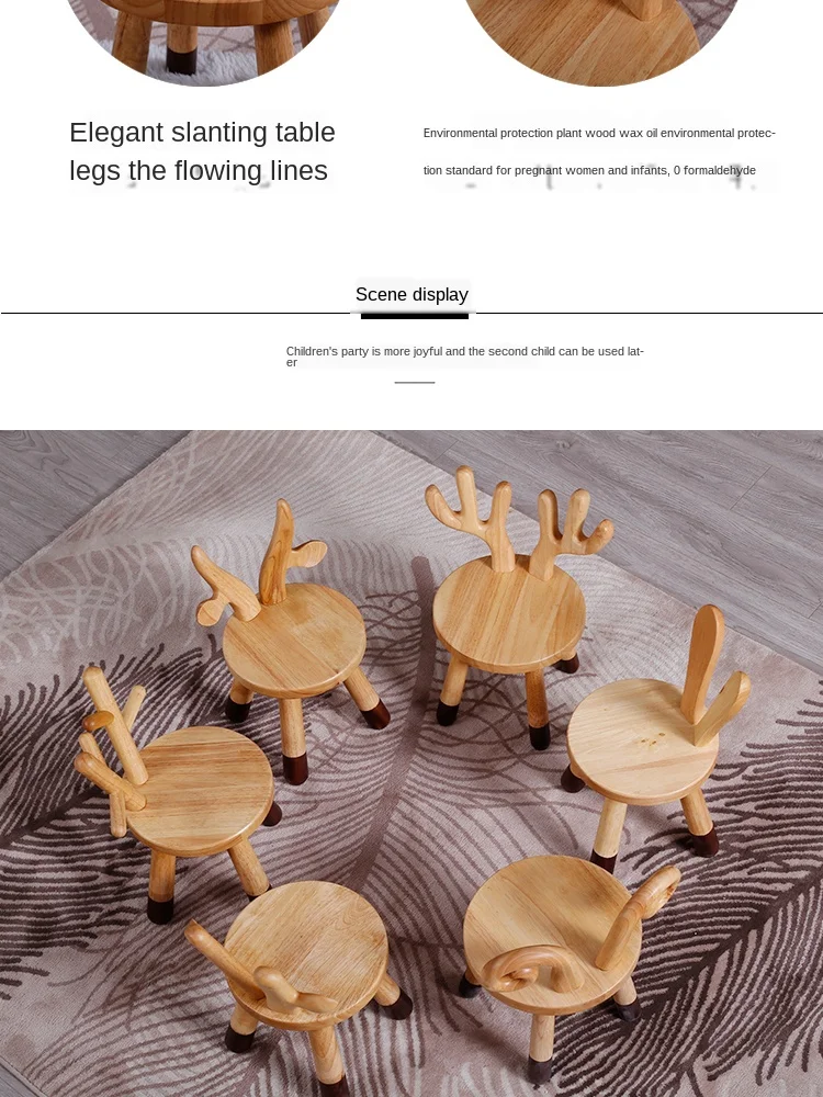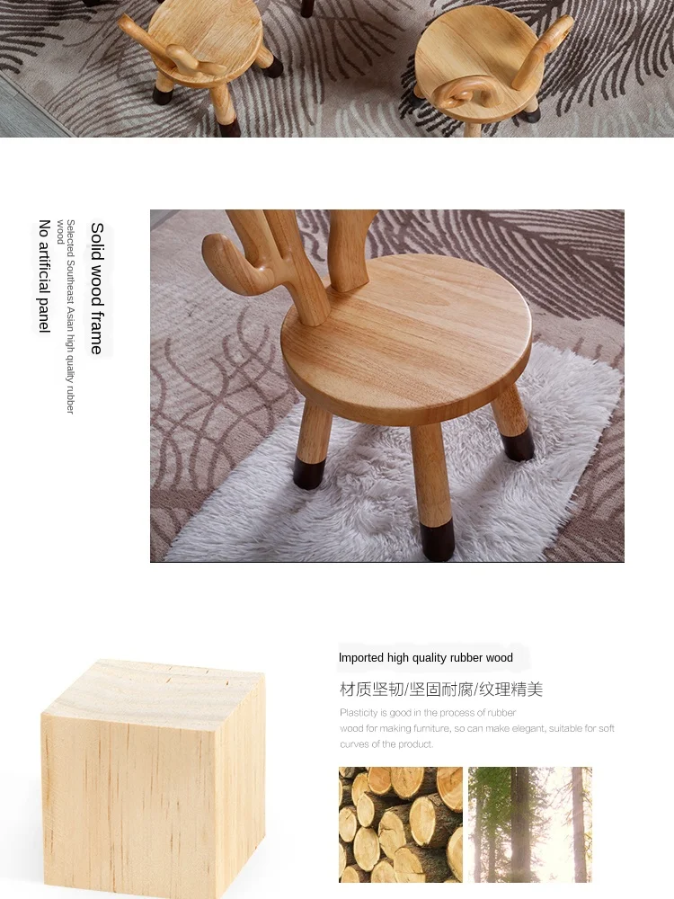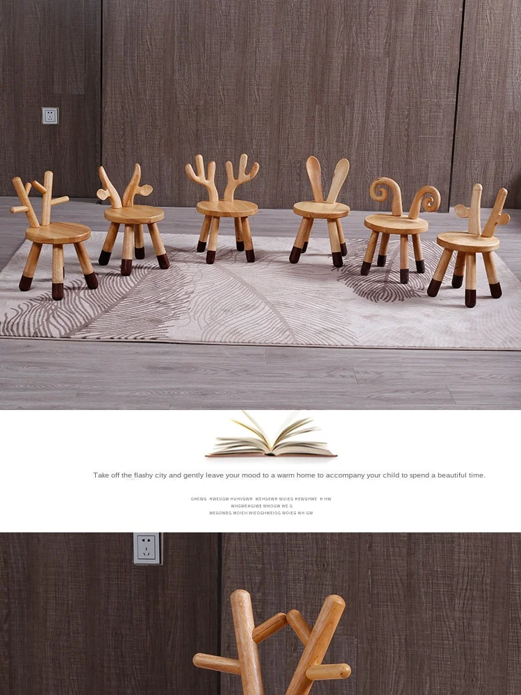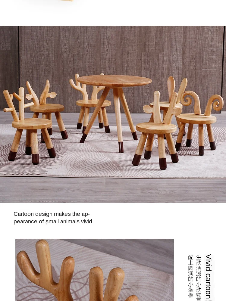 Детский обеденный стул из цельного дерева, модный креативный милый стул из цельного дерева с маленькими животными, детский стул для детского сада