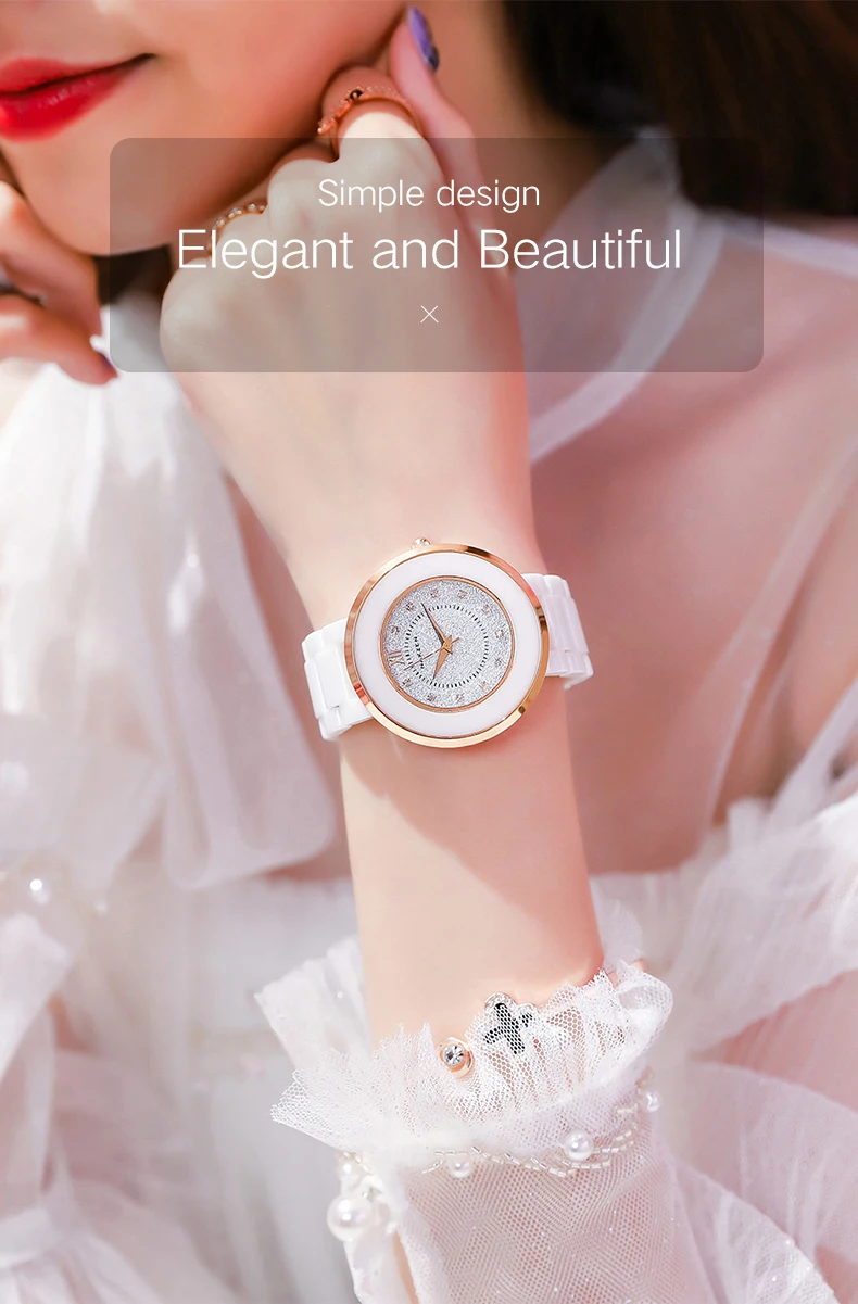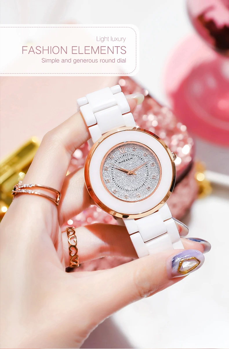 Женские кварцевые часы NAKZEN, Простые керамические аналоговые часы с керамическим ремешком, водонепроницаемые до 30 м, часы под платье со стразами