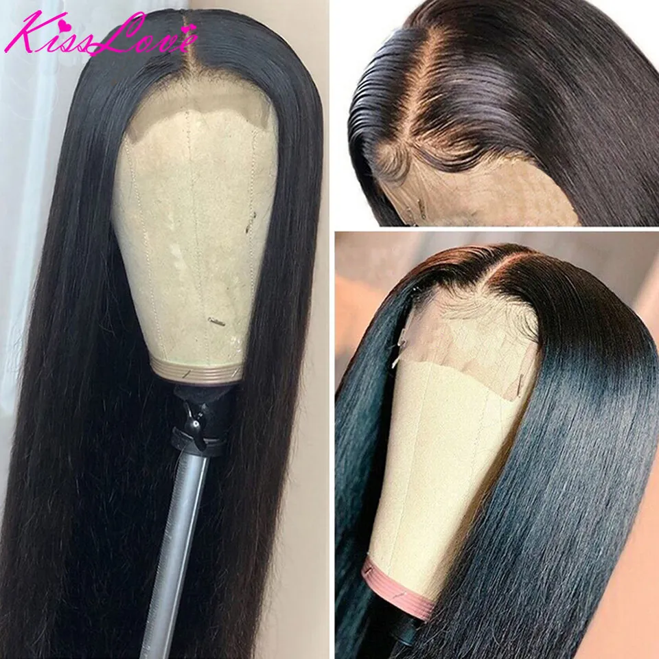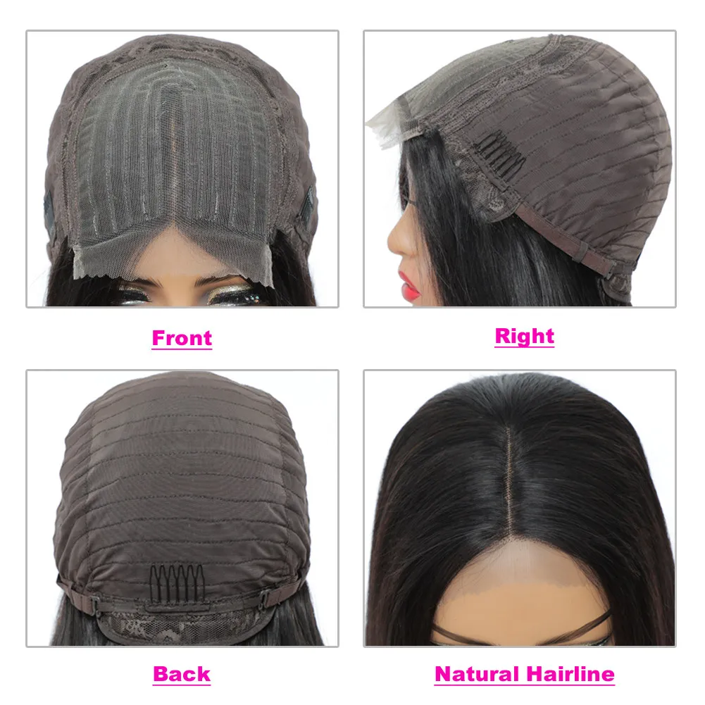 ♥Прямые 6x6 T-часть закрытие кружева парики из натуральных волос