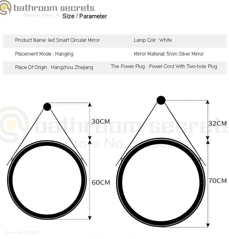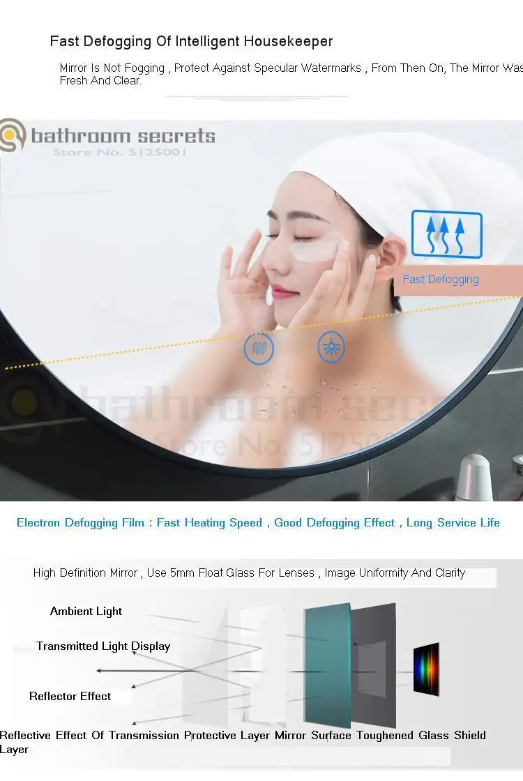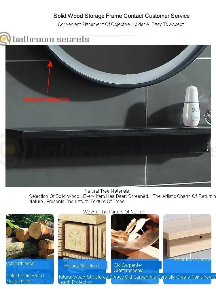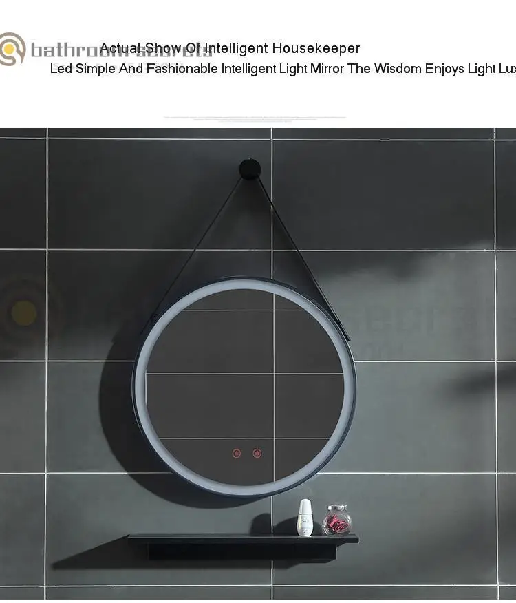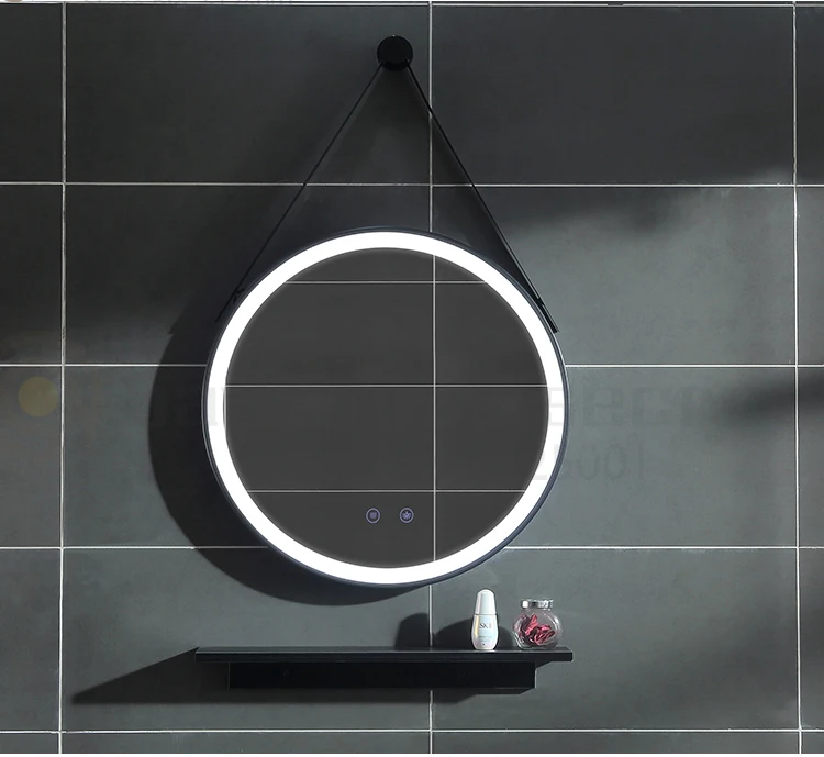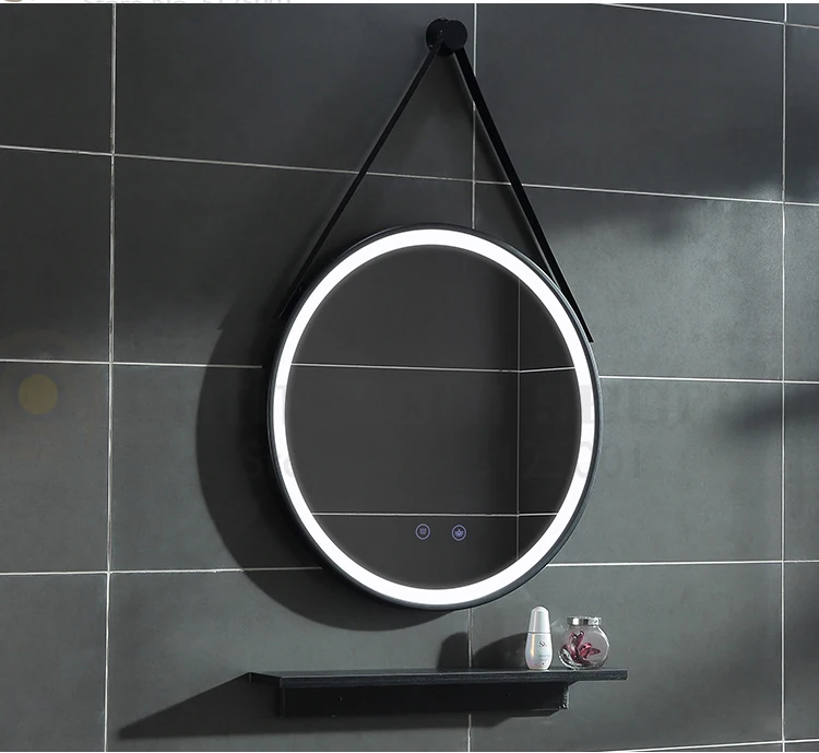Умный сенсорный светодиодный светильник, зеркало для ванной комнаты, анти-туман, настенный макияж, черная рамка, кованые края, круглыйUS $151,01 /