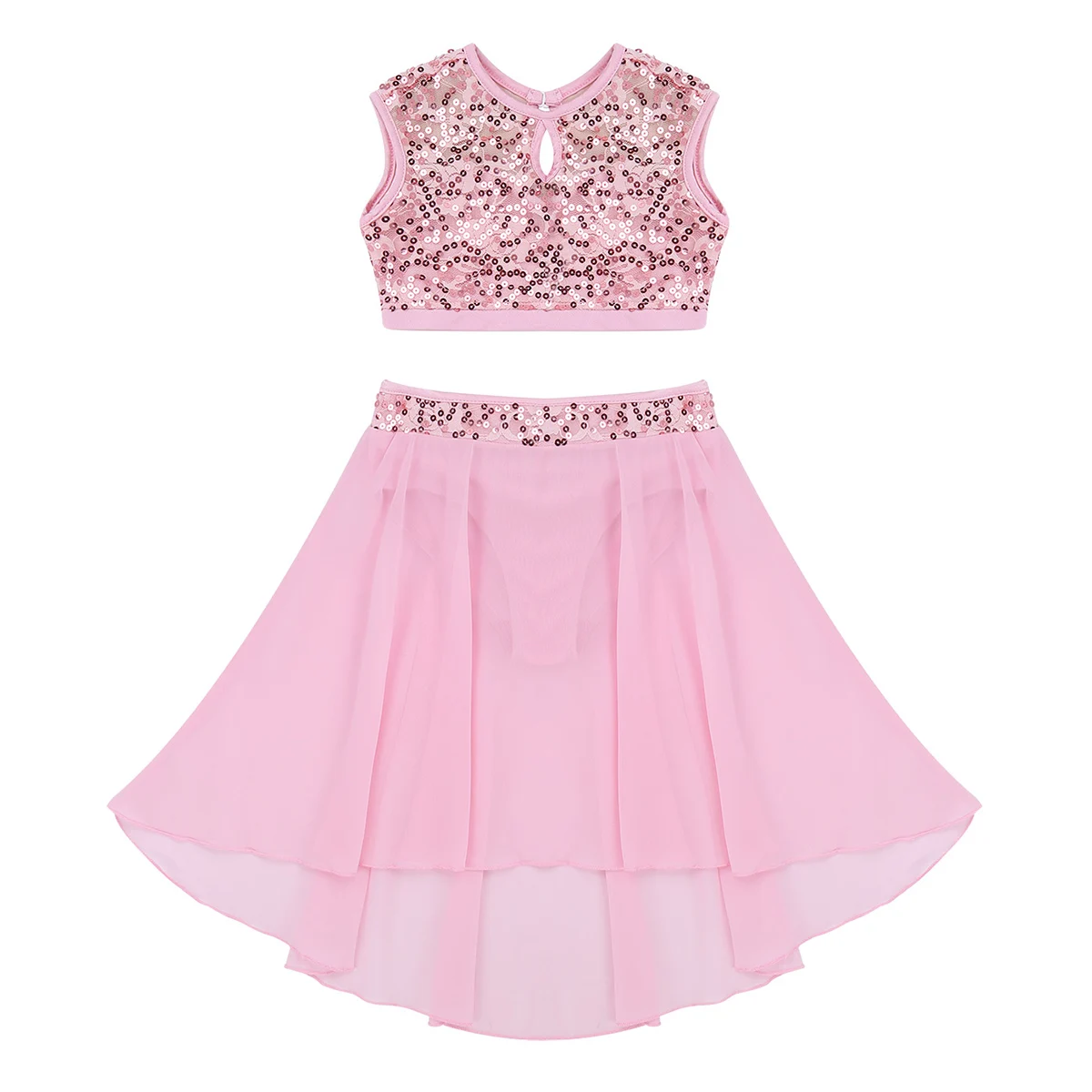 Эффектная шифоновая юбка с глубоким подолом и эластичной резинкой на талии. С пришитыми трусиками. Красивая и модная Одежда для танцев для вашей девочки.