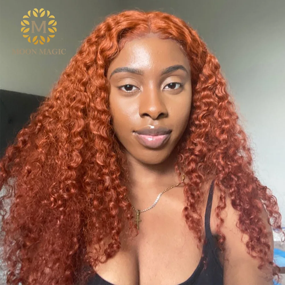 Оранжевый парик из человеческих волос, имбирный цвет, человеческие волосы, парики, кудрявые, глубокая часть, кружевные передние человеческие волосы, парики, бразильский предварительно выщипанный парик из кружева