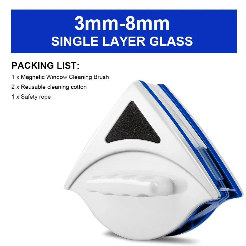 Набор 1 = двухсторонняя Магнитная щетка для очистки окон (3-8 мм):+ 2 х многоразовая очистка хлопка + 1 х Защитная веревка