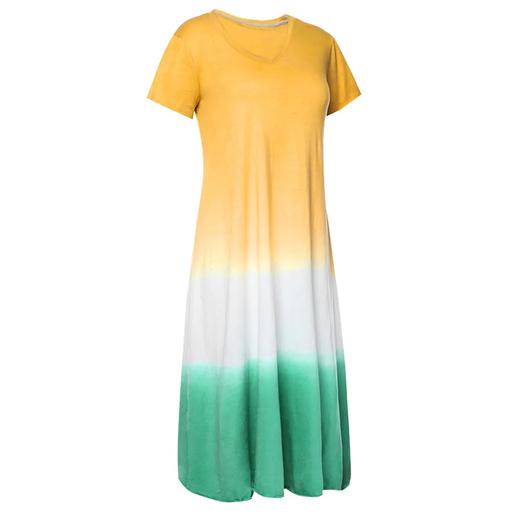 Women Maxi Dress Plus Size 5XL Daily Tie-dye Color Block Loose V Neck Short Sleeve Party Maxi Dresses ropa mujer 2019 NEW