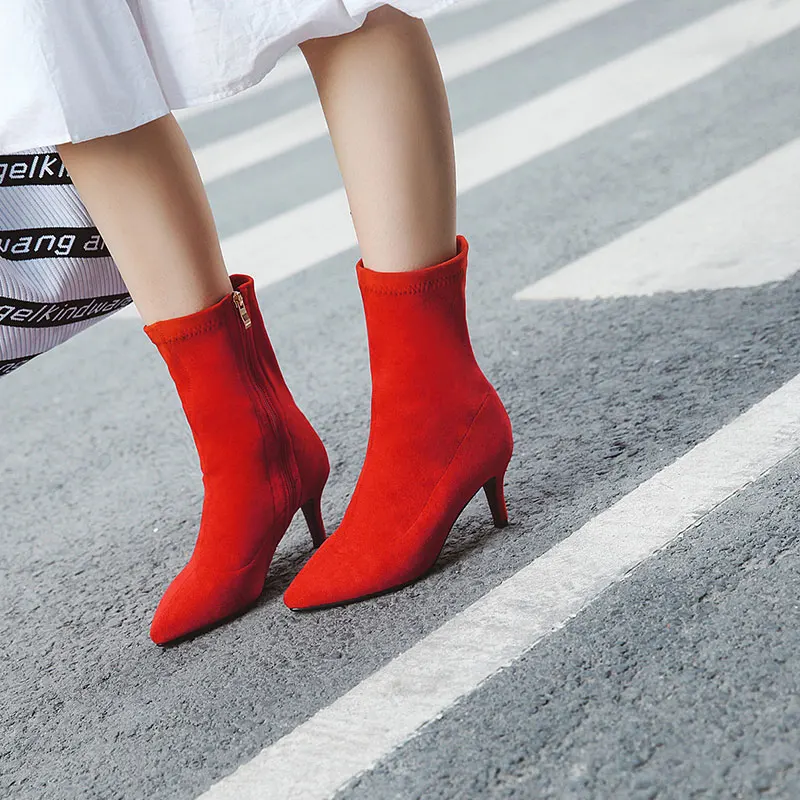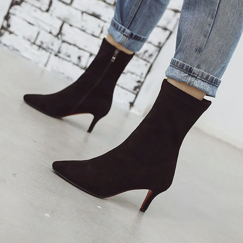 Sgesvier/модные вечерние ботильоны с острым носком, большие размеры 32-43, женская обувь, женские Стрейчевые ботинки на тонком каблуке, G733, 2019