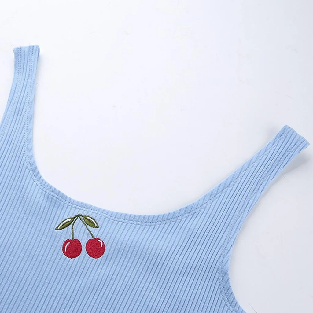 Лето Feitong для женщин, сексуальный топ без рукавов с принтом вишни, укороченный Повседневный Топ на бретелях для женщин, сексуальный Повседневный тонкий женский топ 2021
