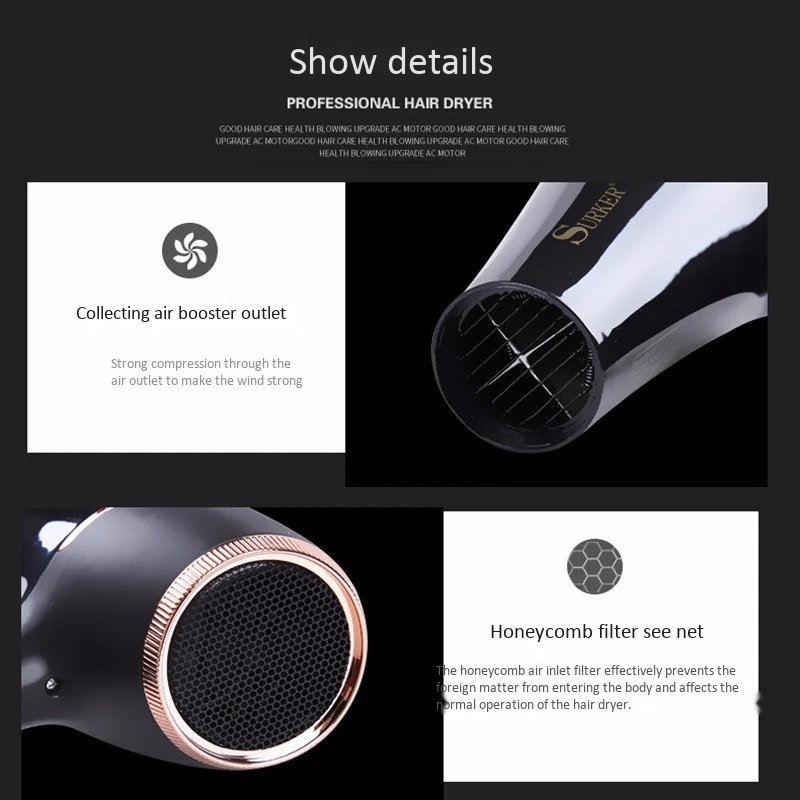 Surker Sk-63 фен Контроль температуры защита от перегрева 6-Регулировка скорости 3000 Вт высокой мощности Мощность горячей и воздуходувка холодного воздуха с