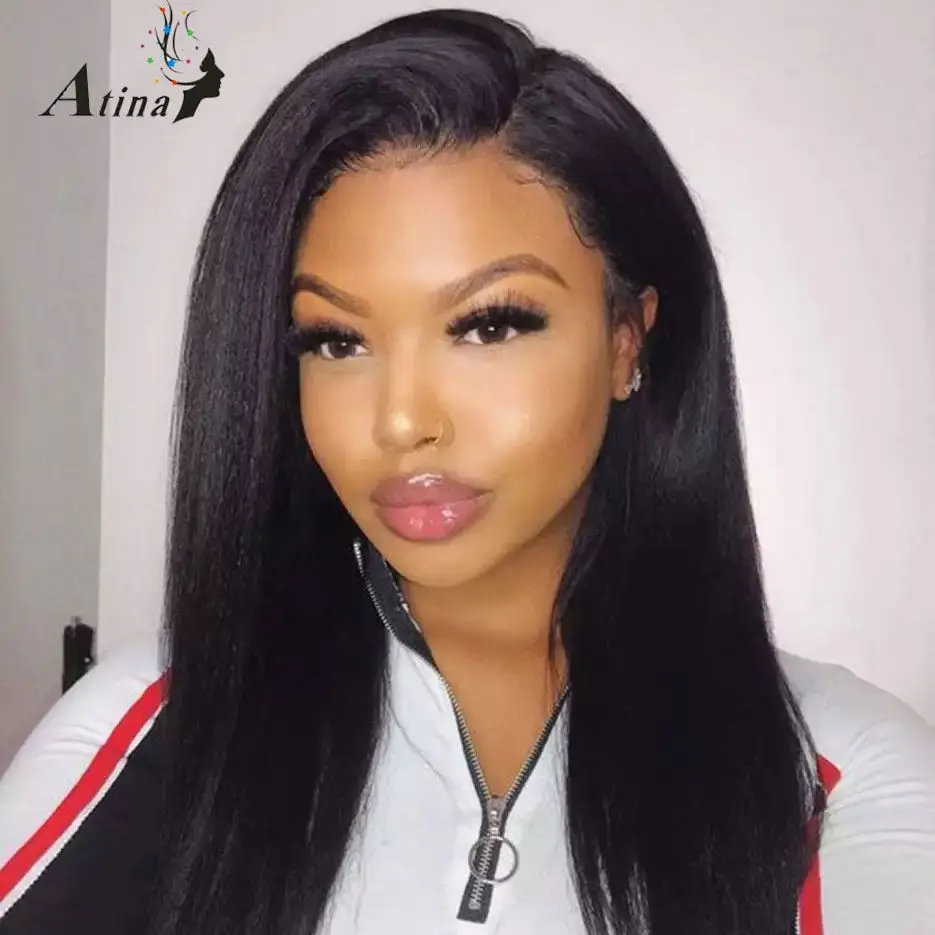 Atina предварительно сорвал 13x 6 кружевной передний парик человеческих волос Yaki прямые отбеливатель узлы бразильский Remy Невидимый HD прозрачный парик шнурка