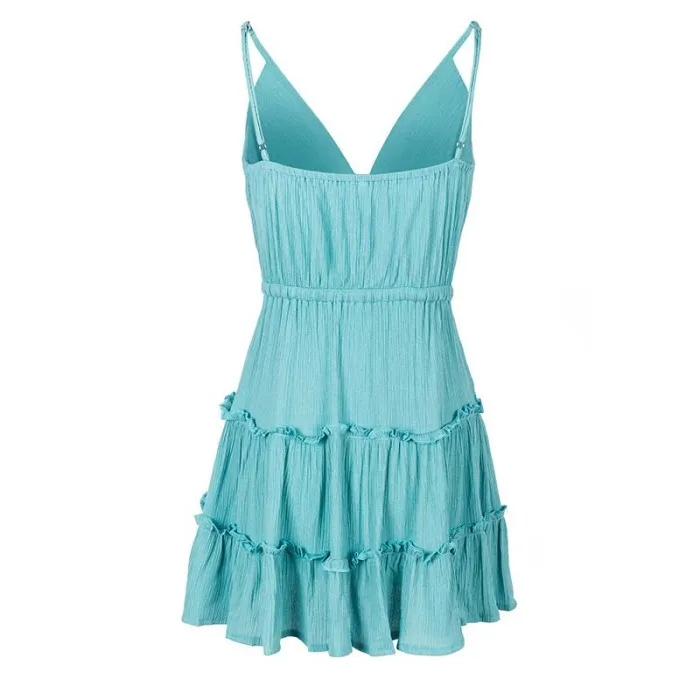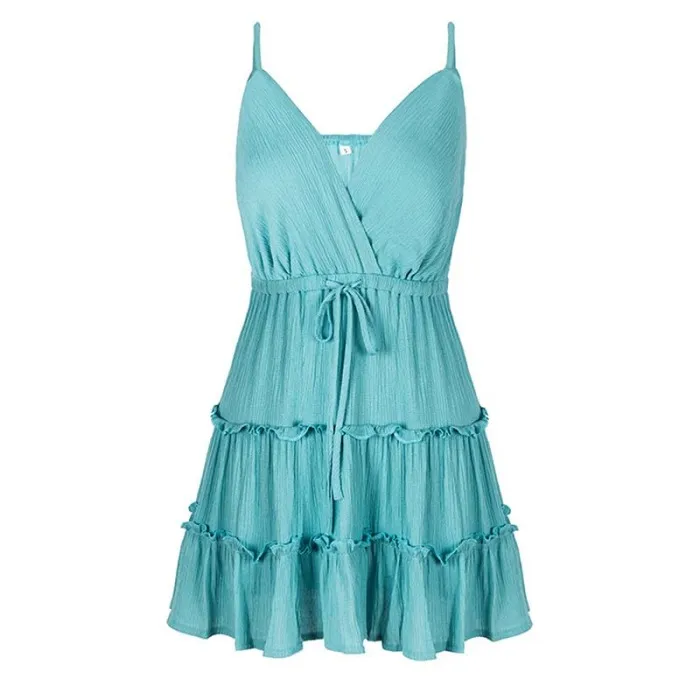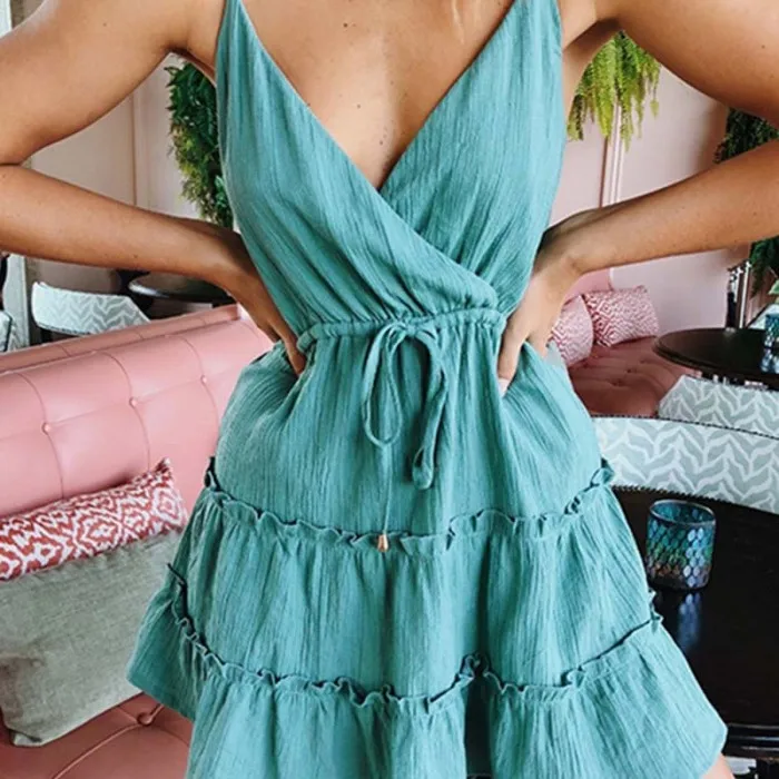 Популярное женское платье с цветочным принтом, v-образным вырезом, бретельками и оборками, мини-платье в стиле бохо на лето IE998