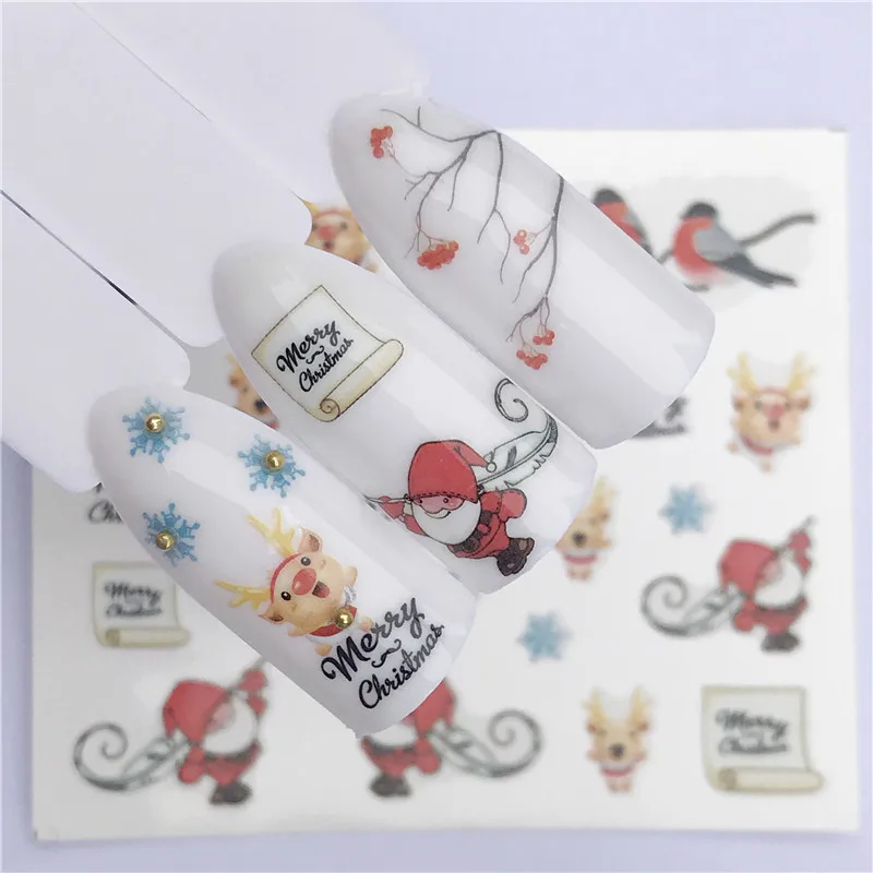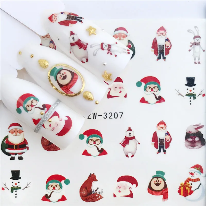 1 лист 3D наклеек для дизайна ногтей Санта-Клаус Наклейки Ногтей рождественские