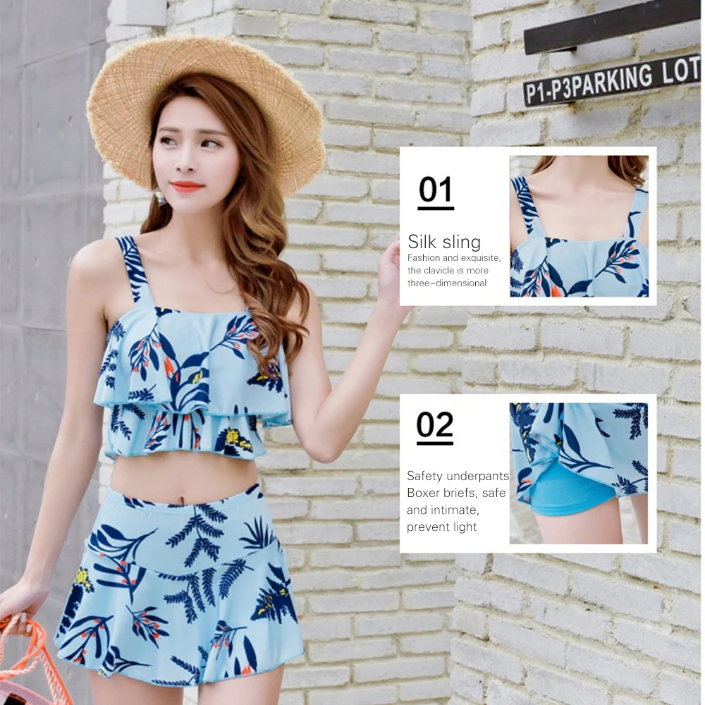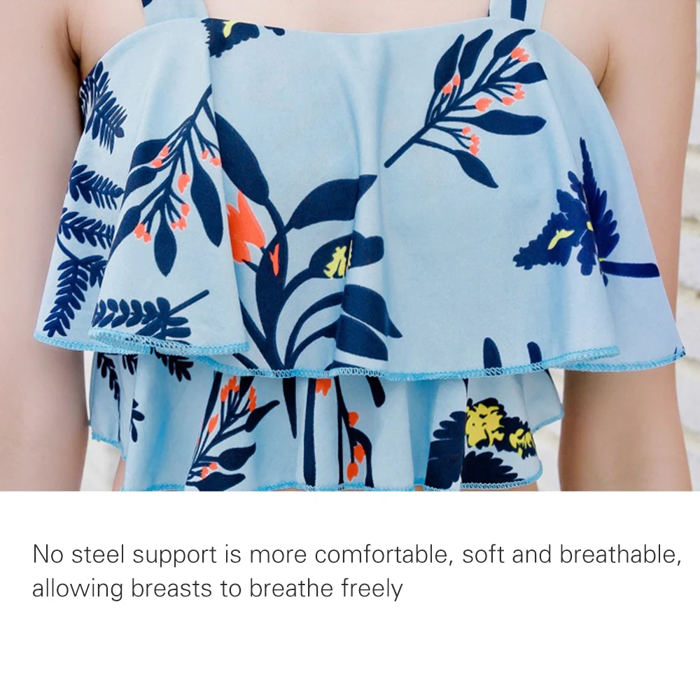 Дизайн: двойной гофрированный Волан с рюшами, съемный верх бикини с пуш-ап подкладкой, низ с принтом, низ с подкладкой не просвечивается.