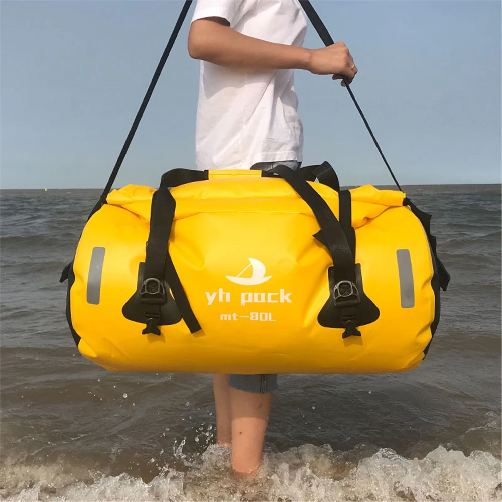 6.100% водонепроницаемый материал: простой эффективный дизайн в рулоне для 100% водонепроницаемости. 1000D ПВХ, с бесшовным ПВХ материалом с высокой водоотталкивающей конструкцией, водонепроницаемые характеристики надежны, нет необходимости беспокоиться о том, что содержимое промокает. Его можно использовать безопасно даже в дождливые дни.