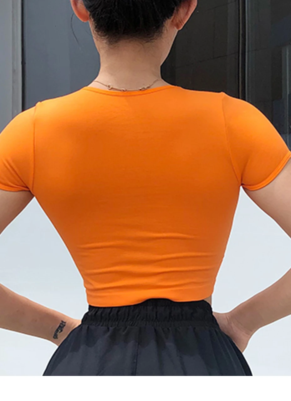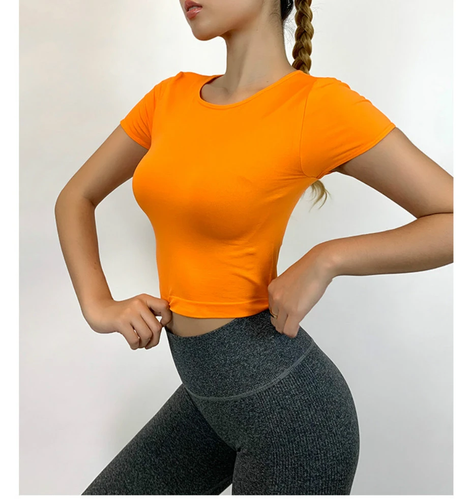 Женский бесшовный укороченный топ с коротким рукавом эластичные удобные