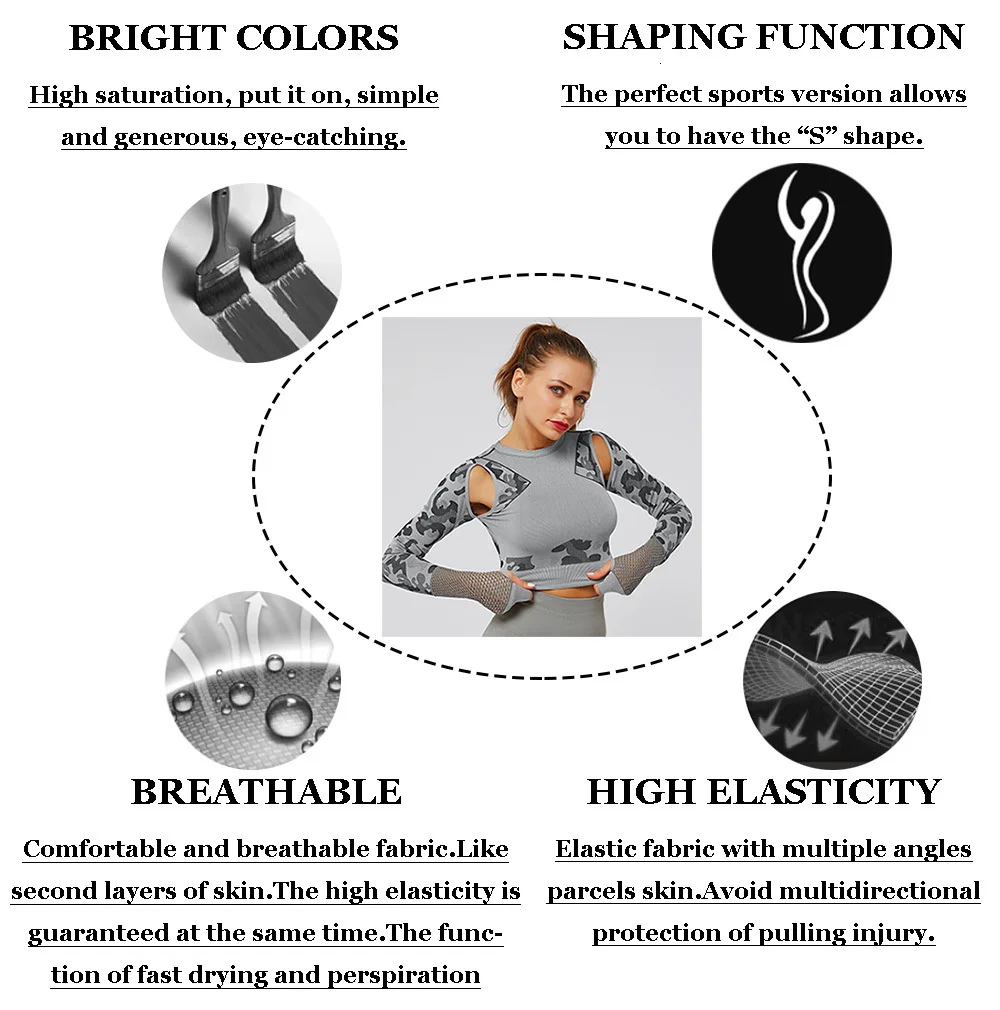 Артикул:Женская футболка для йоги Цвет: 3 цвета (коричневый, серый, зеленый) Ткань: 80% полиэстер + 20% нейлон Размер: s, m, l Рубашки Стиль: Мода Особенности: камуфляжные футболки в мозаичном стиле Характеристики: воздухопроницаемость, быстрая сушка, комфорт, пот Подходит для: танцев, йоги, тренировок, бега, фитнеса, тренажерного зала