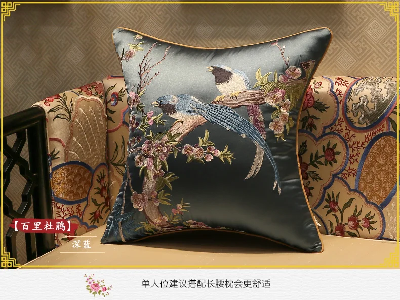 Наволочка декоративная наволочка, чехол для подушки, современные китайские традиционные птицы, флора, роскошная вышивка, высококачественный декор для домашнего дивана 35x50/45x45/50x50/40x60 см